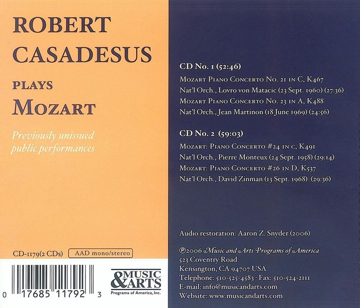 | Artiste Principal | Wolfgang Amadeus Mozart, Robert Casadesus |