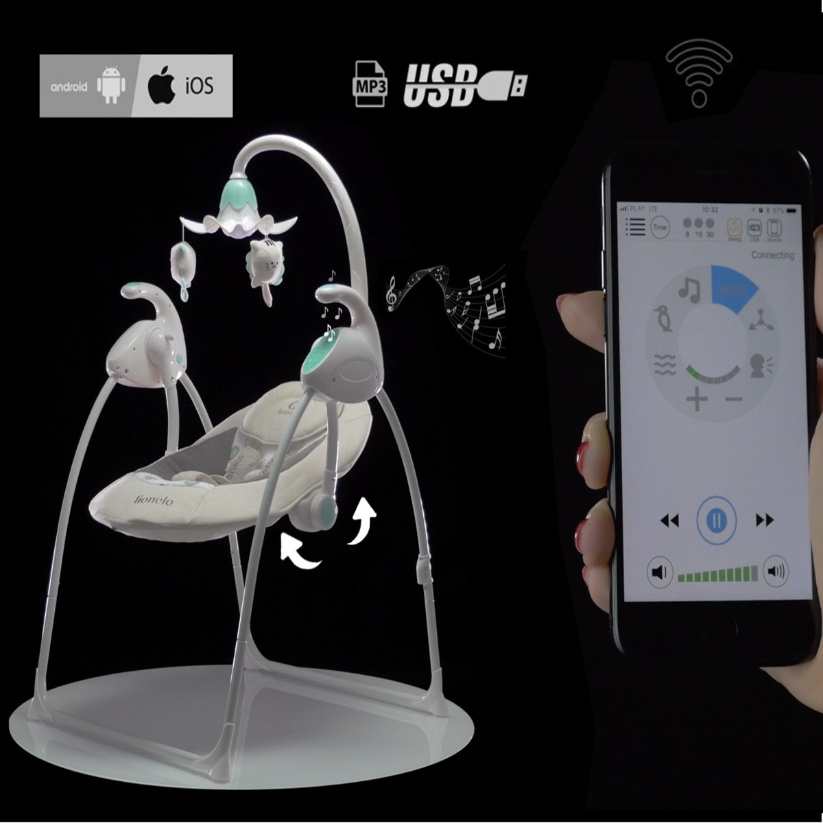| Plus produit | Balancelle inclinable, motorisée et musicale |