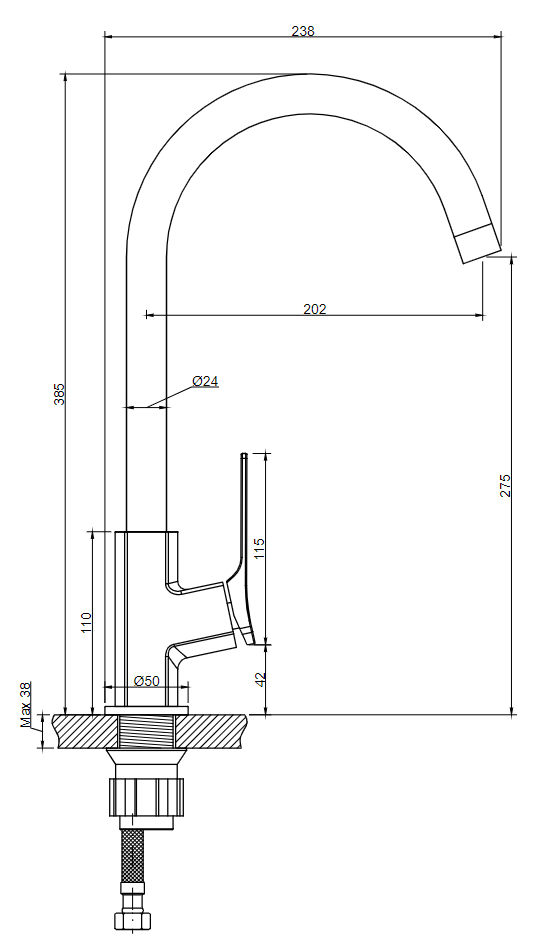 - Type: robinet d'évier de cuisine sur pied à levier unique;