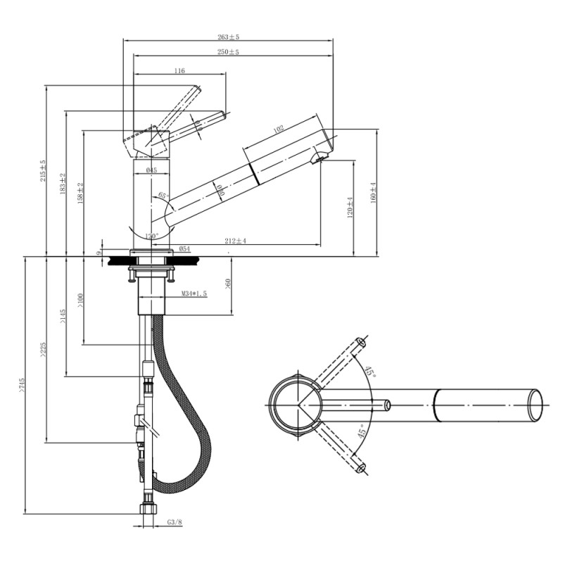 Pivotement à 120° pour une bonne flexibilité sur l'évier