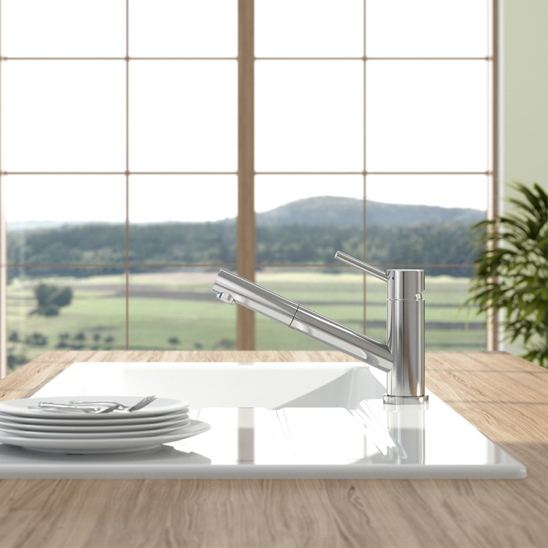 Jet confort : le jet est parfaitement calibré et ventillé afin d'économiser de l'eau tout en proposant un confort agréable sur la peau et en assurant un lavage des aliments et des ustensiles optimal