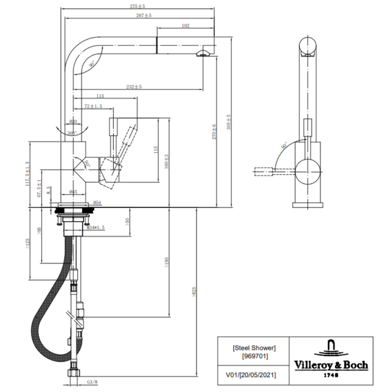 | Libellé | Robinet cuisine VILLEROY ET BOCH Steel Shower acier massif |