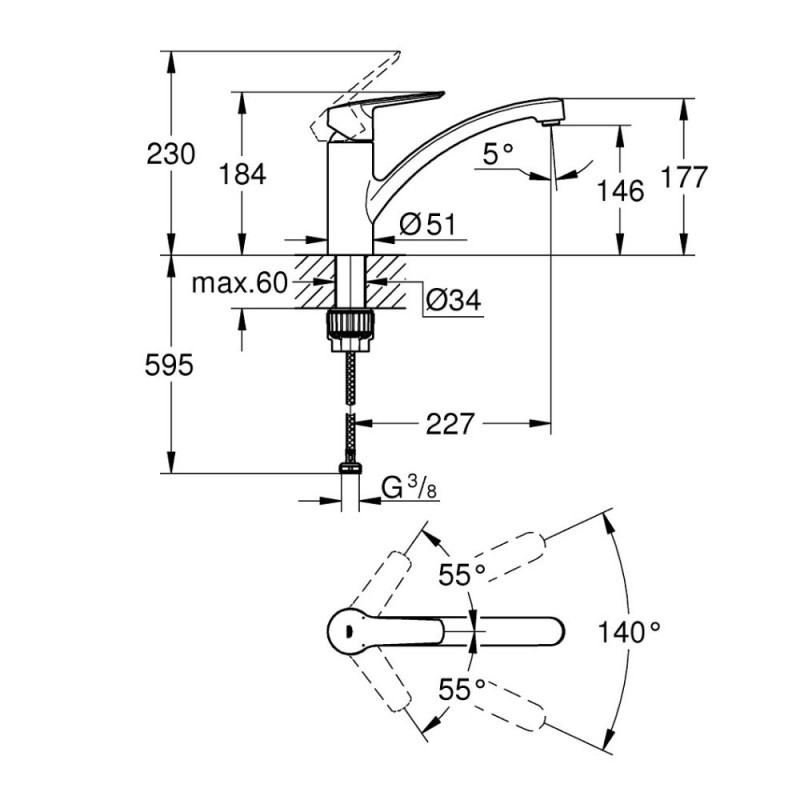 | Libellé | Robinet de cuisine bec bas GROHE Start 2021 chromé |
