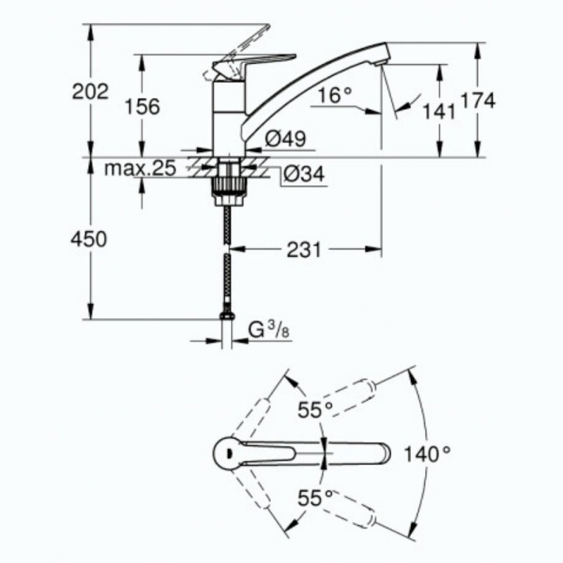 Caractéristiques techniques du mitigeur de cuisine GROHE StartEco bec bas. Bec bas