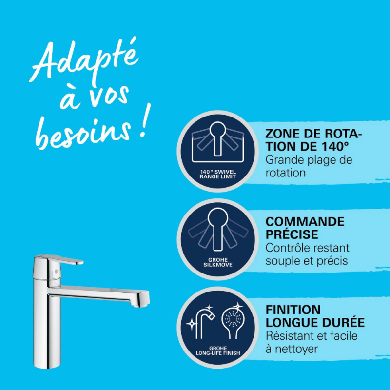 | Libellé | Robinet de cuisine GROHE Get chromé + microfibre |