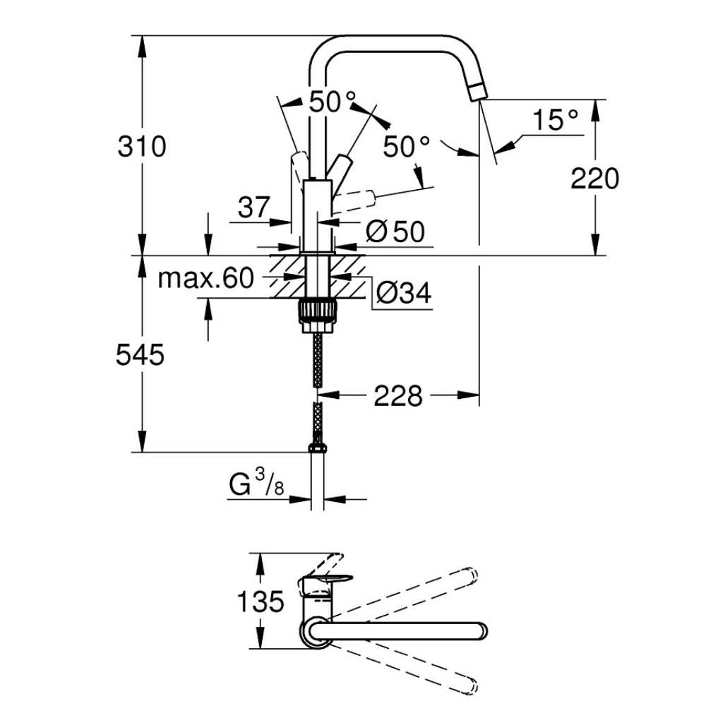 Caractéristiques techniques du mitigeur pour évier Start GROHE