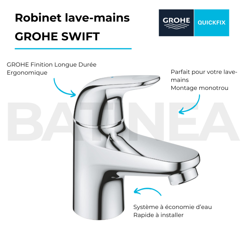 | Libellé | Robinet lave-mains GROHE Swift ouverture eau froide chromé |