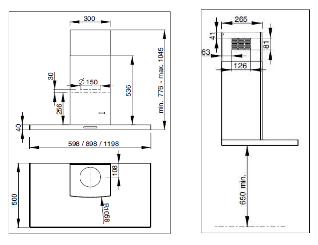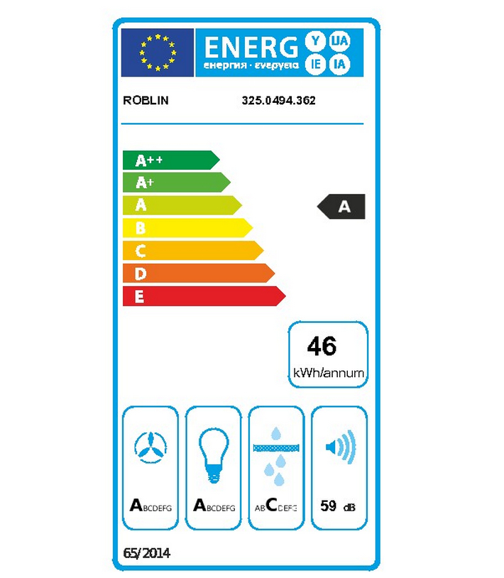 Roblin 900. Puissance d'extraction maximum: 741 m³/h, Type d'extraction: Conduit, Niveau de son (vitesse lente): 49 dB. Type: Montée au mur, Couleur du produit: Acier inoxydable, Nom de la couleur: Inox. Type de filtre à graisse: Aluminium, Nombre de filtres: 1 pièce(s). Puissance de l'ampoule: 1 W, Nombre d'ampoules: 2 ampoule(s), Type d'ampoule: LED. Charge connectée: 270 W, Tension d'entrée AC: 220 - 240 V, Fréquence d'entrée AC: 50 - 60 Hz