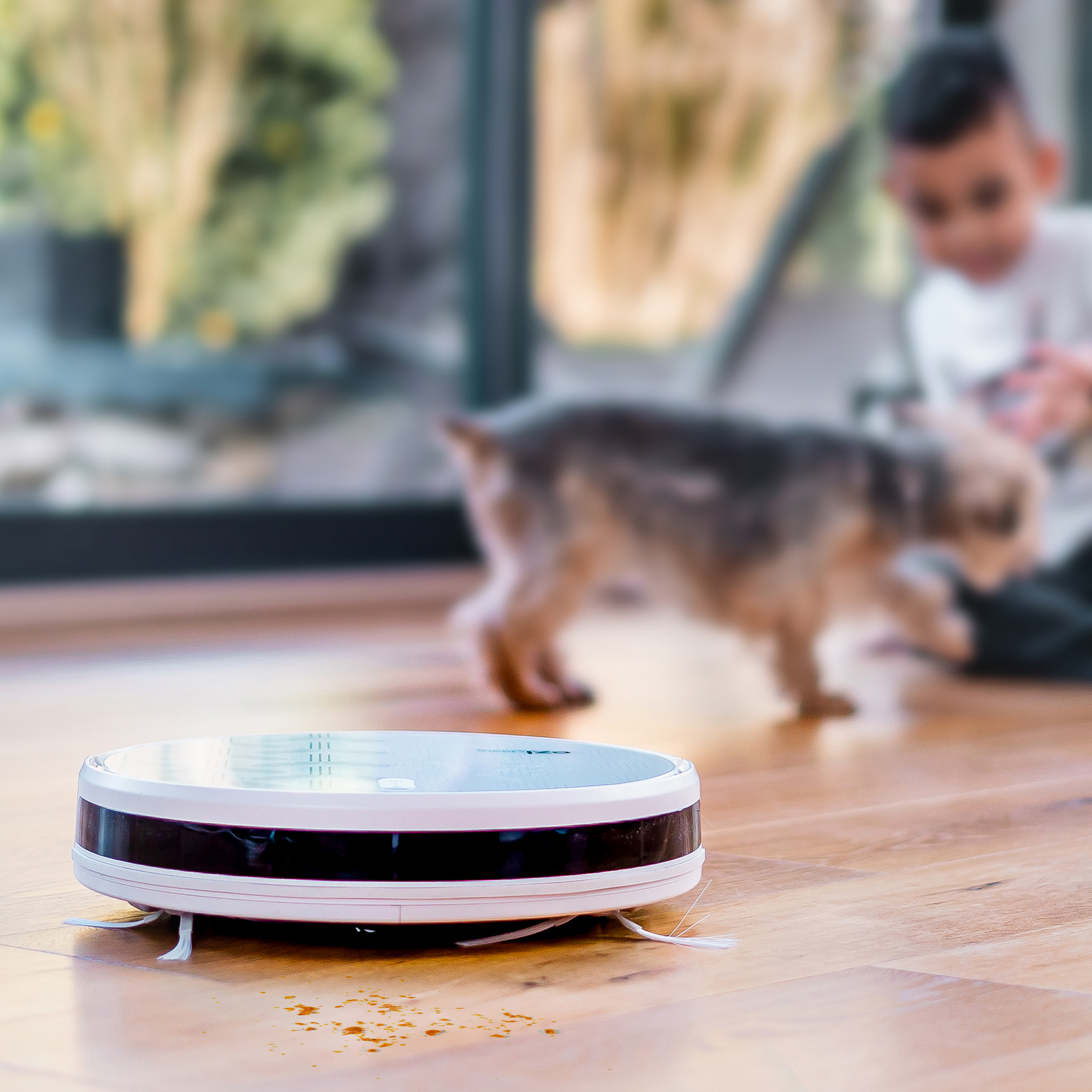 . Robot aspirateur connecté. Navigation gyroscopique Navig+™. Moteur à technologie MagnetiK™. Silencieux : 55dB. 100m² de couverture. Tous types de sols. Batterie Lithium-Ion dernière génération. Garantie 2+1 ans (sous réserve d'enregistrer votre produit sur eziclean.com