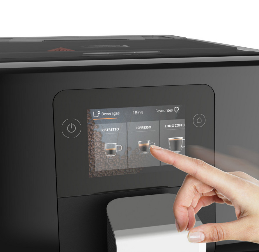 ea873810 - robot café 15 bars noir - Robot café Intuition Préférence Krups EA873810. L'intuition est le maître-mot de la conception de cette machine à café broyeur grain. Laissez-vous guider au travers d'un parcours simplifié et personnalisé afin de déguster un café parfait ! Son interface semblable à celle d'un smartphone avec son écran tactile de grande taille, offre des paramètres de personnalisation avancés et des indicateurs lumineux colorés intuitifs, le tout conçu de manière intelligente et pratique. Il ne reste plus qu'à faire confiance à votre intuition ! Le processus d'extraction parfaitement maîtrisé est doté de la technologie Quattro Force avec un broyage rapide des grains, une percolation optimisée, un tassement parfait et un système autonettoyant pour un café savoureux. Profitez des 11 boissons pré-enregistrées, et grâce au système One Touch Cappuccino, vous pourrez préparer de délicieux cappuccinos, latte macchiato ou autres, avec une mousse parfaite. Inventez également vos propres recettes, la personnalisation permet d'enregistrer jusqu'à 8 boissons favorites pour lesquelles vous choisissez la couleur de la lumière associée, le type d'affichage et la luminosité, pour accéder rapidement à vos boissons préférées. Un véritable confort d'utilisation, tout a été pensé pour votre confort au quotidien : une façade inclinée avec une finition haut de gamme pour une meilleure lisibilité et une interface immersive tactile. Un ajustement de la hauteur des buses de café. Un bac à marc de café accessible à l'avant. Un bac récolte-gouttes anti-débordement pour un confort d'utilisation extrême. Un entretien facile sans intervention à l'intérieur de la machine grâce au système autonettoyant. Vous pourrez passer moins de temps à vous soucier du nettoyage et plus de temps à savourer le café que vous aimez ! Système à lait intégré, facile, il peut s?utiliser directement dans votre bouteille de lait pour éviter le gaspillage de lait. Possibilité de réaliser 2 boissons lactées en simultané. Le système lait Krups, issu d'une technologie avancée, est également facile à nettoyer.