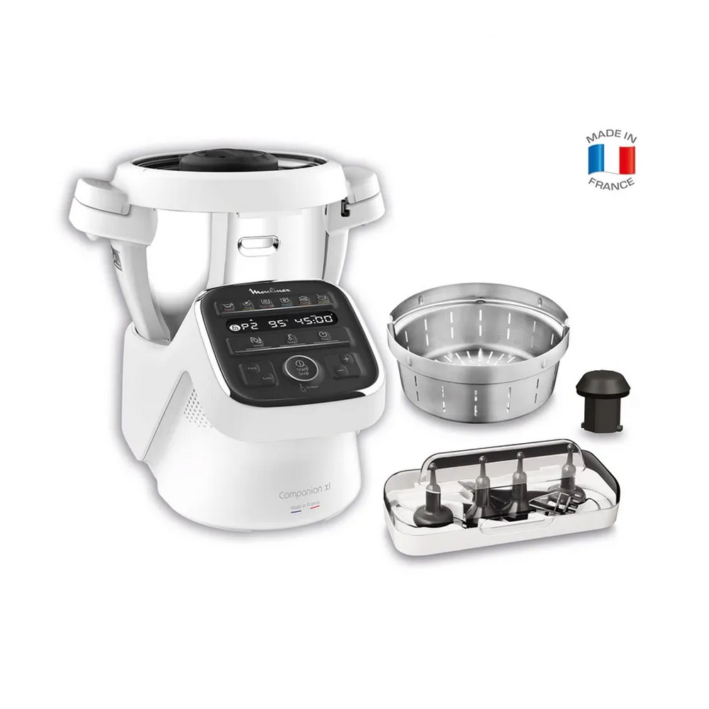 yy4431fg - robot cuiseur multifonction 4.5l 1550w blanc - Le robot multifonction Companion XL YY4431FG de Moulinex, cuit, mijote, cuit à la vapeur, rissole, frit, dore, mélange, pétrit, fouette ce que vous voulez et vous permet de passer moins de temps en cuisine et plus de temps avec vos proches. Vous préparez une grande variété de recettes grâce à une montée en température de 30 °C pour des cuissons douces, à 130 °C pour saisir parfaitement vos viandes ou rissoler vos oignons. Vous réussissez tous vos plats préférés, sucrés ou salés et profitez d'encore plus de recettes grâce aux accessoires Moulinex inclus notamment couteau hachoir, couteau pétrin, fouet, mélangeur, panier vapeur, accessoire à fond plat XL. Ce robot est idéal pour régaler toute une famille avec la capacité du bol de 4.5 litres jusqu'à 8 à 10 personnes (capacité utile 3 litres). En conclusion, ce robot est idéal, en quelques clics, le robot multifonction prépare un nombre illimité de recettes pour toute la famille, grâce à 12 programmes automatiques, 6 accessoires dédiés et un grand bol pratique. Laissé sans surveillance, il coupe, mélange, cuit et maintient même vos plats au chaud jusqu?à ce que vous passiez à table. Avec Companion XL, cuisinez plus sans en faire plus ! - Type de produit : Robot multifonction cuiseur.