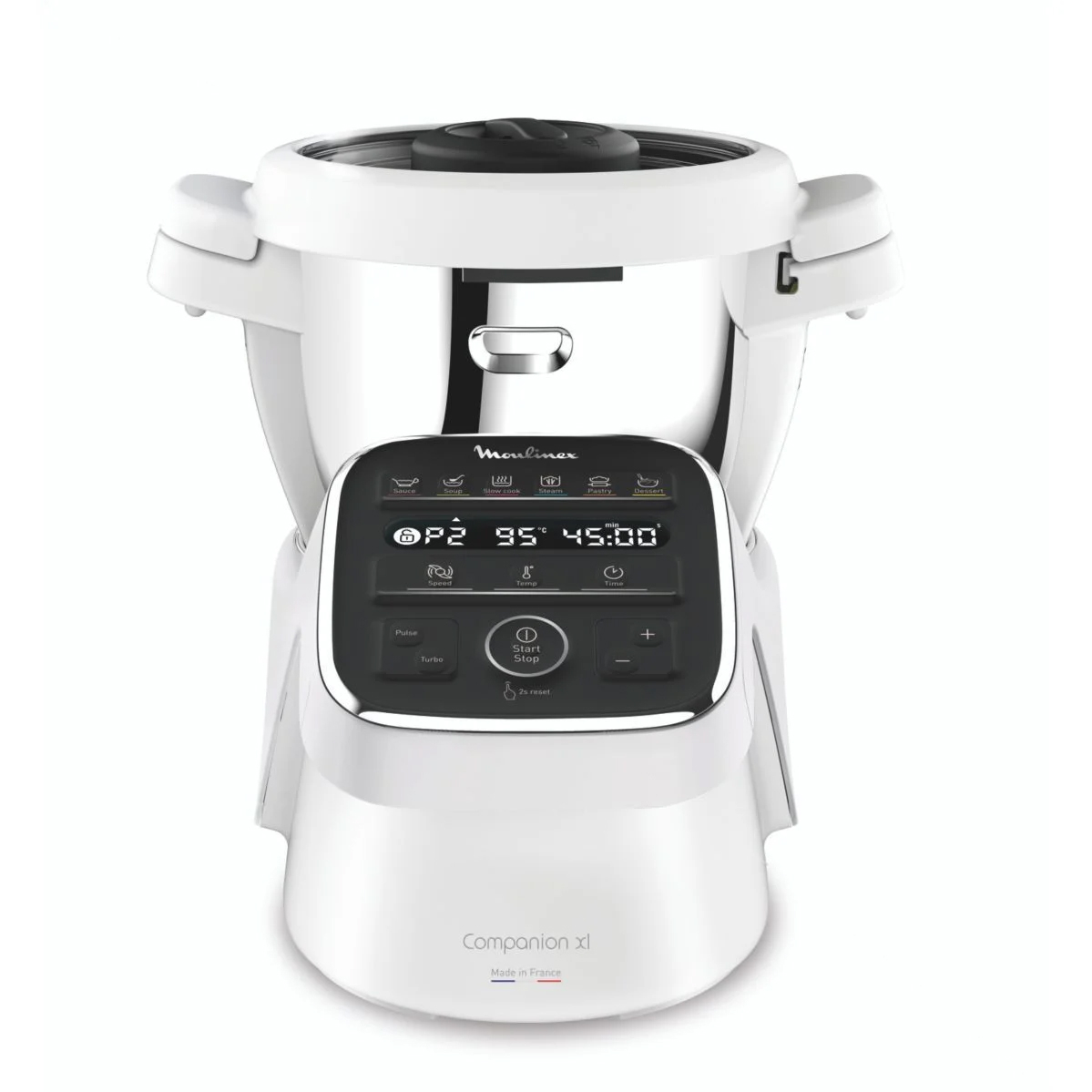 Adonnez-vous aux petits plaisirs de la vie pendant que votre Companion XL fait tout le travail en cuisine. Fabriqué en France, ce robot cuiseur multifonction est facile à utiliser et très polyvalent grâce à ses 14 modes dont un mode manuel et ses 5 accessoires qui vous permettent de réaliser parfaitement tout type de recettes. Son bol grande capacité (4,5L) est idéal pour préparer de délicieux plats pour toute la famille et amis jusqu'à 10 personnes. L'application gratuite Moulinex vous propose une inspiration illimitée avec de nouvelles recettes ajoutées chaque mois, ainsi que de nombreux services personnalisés. Avec le robot chauffant Companion XL, profitez de plus de saveurs sans en faire plus !