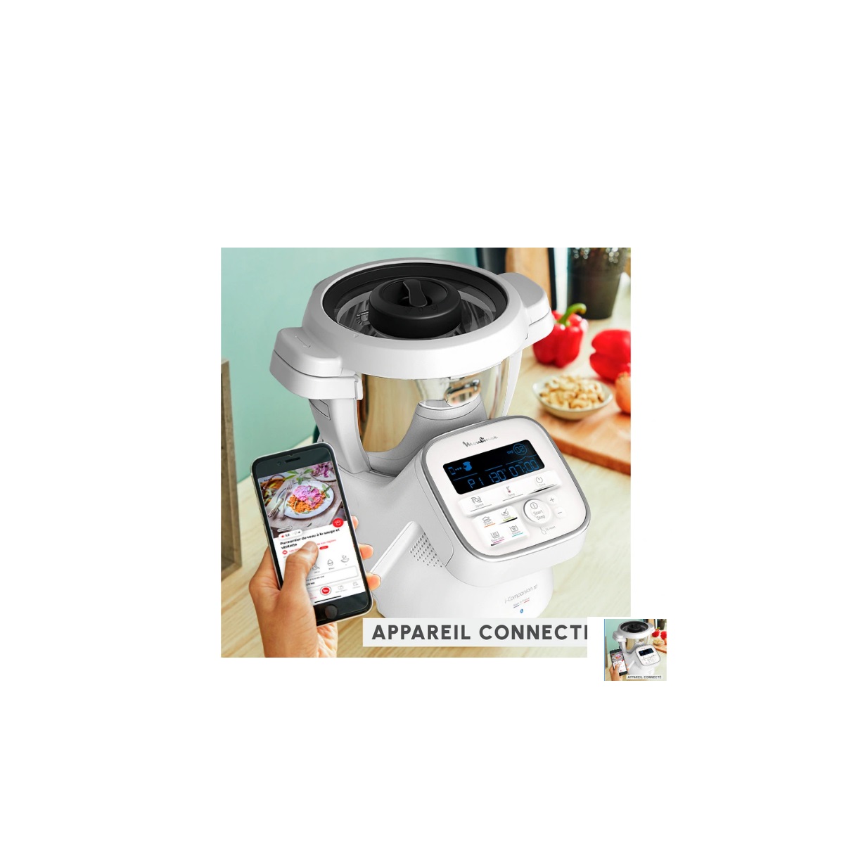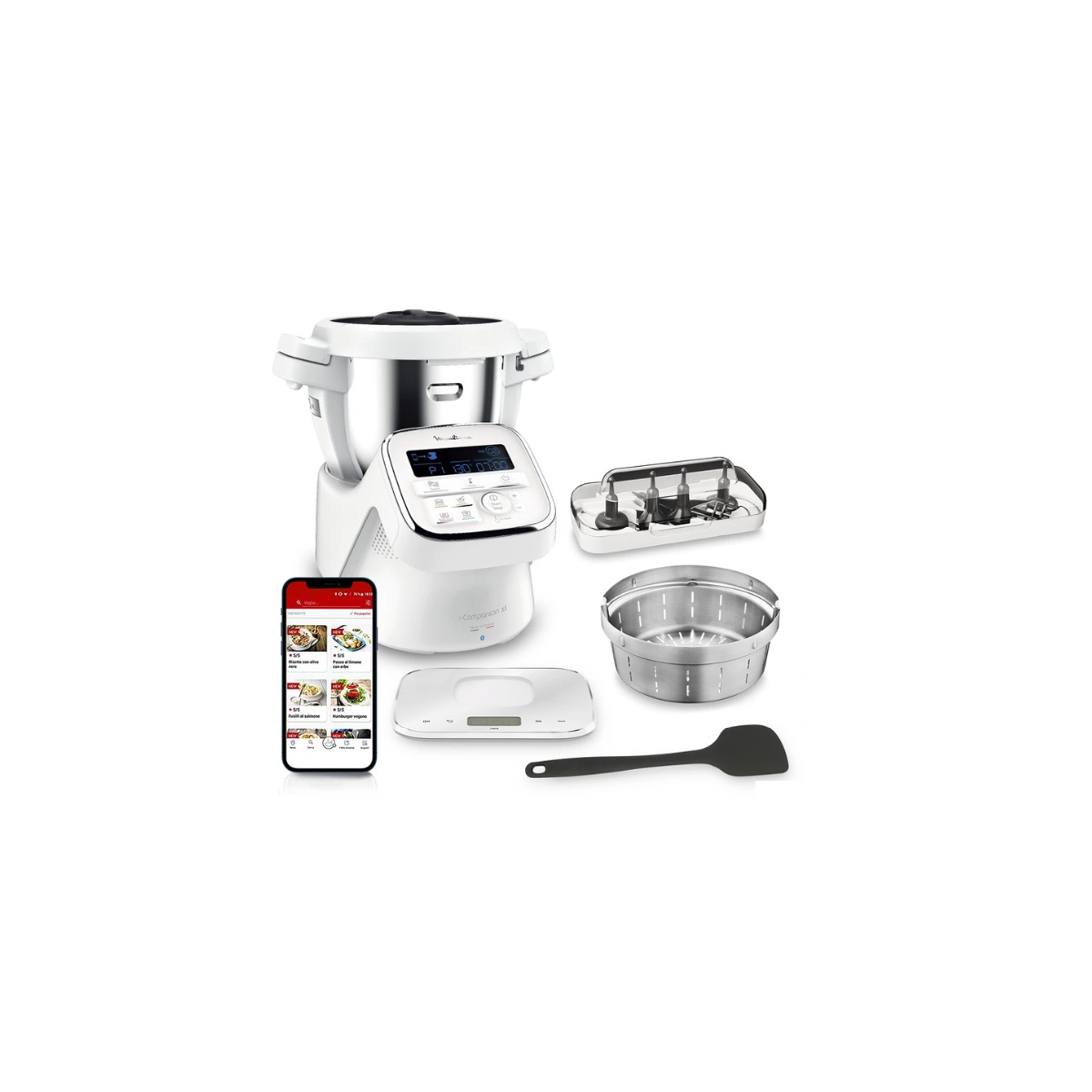| Accessoires inclus | Couteau hachoir, Couteau pétrin/concasseur, Batteur, Mixeur, Panier vapeur interne, Balance connectée, Spatule, Boîte de rangement des accessoires |