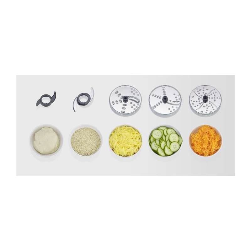 | Accessoires inclus | Disque émulsionneur, Crochet pétrisseur, 3 disques 2 en 1, Blender en verre 1.5 L avec couteau inox, Moulin à épices 140 ml avec fixation et couteau inox |