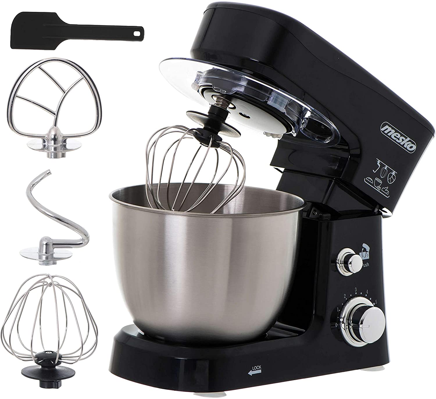 Mélangeur à pain puissant avec une puissance maximale de 1200W et 6 niveaux de vitesse pour donner une puissance constante quel que soit le mélange à préparer. Parfait pour mélanger, pétrir ou battre.Cuvette en acier inoxydable d'une capacité de 3,5 litres pour préparer des quantités de mélanges pour toute la famille avec couvercle pour la protection contre les éclaboussures avec trou de remplissage. Le bol en acier inoxydable passe au lave-vaisselle.Comprend un crochet pour pétrir les pâtes lourdes (pain, pâtes)/un crochet à remuer pour la pâte brisée, la pâte à biscuits, etc./un crochet à fouet avec protection contre les éclaboussures pour monter les blancs d'œufs, la crème, les meringues, etc./une spatule.Une conception robuste, stable et durable qui garantit des années d'utilisation. Système d'arrêt automatique lorsque la tête est soulevée ou lorsqu'un élément est mal placé. Base avec ventouses antidérapantes. Protection contre la surcharge du moteur.Offre un mouvement planétaire qui permet à l'accessoire de tourner sur lui-même en suivant les parois du bol, idéal pour pétrir, battre, mélanger, fouetter. Vous pourrez faire de la pâte à pain, des pâtes, des pizzas, des nouilles, des gaufres, des gâteaux, etc.