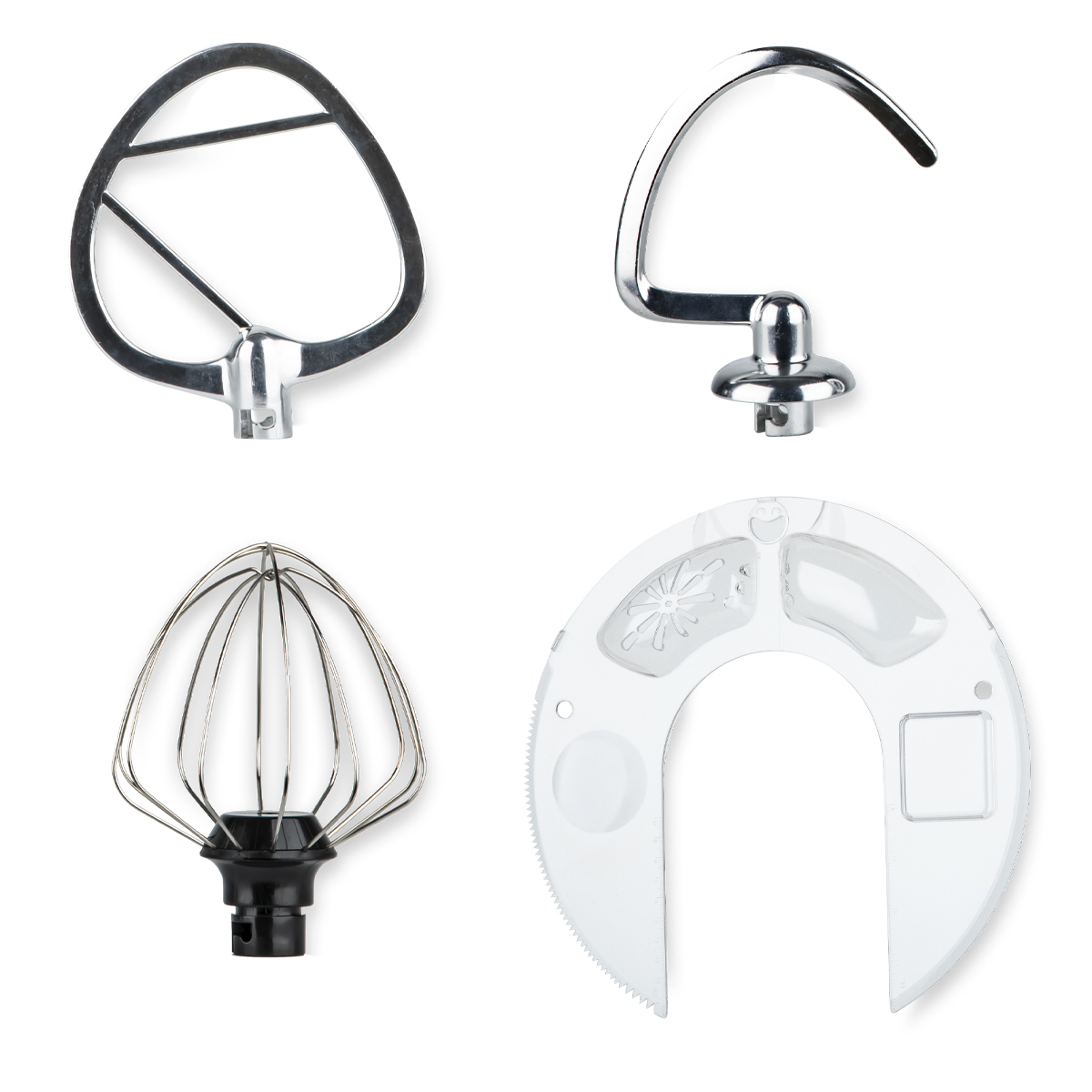 - Accessoires. Il inclut 3 accessoires : mélangeur en aluminium, crochet en aluminium et fouet en acier inoxydable.