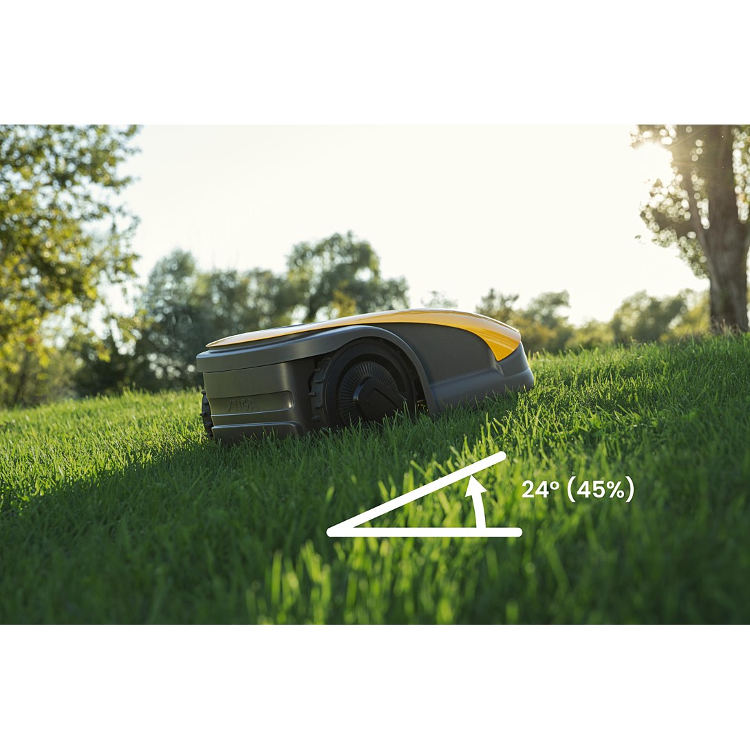 Le robot tondeuse STIGA A 1000 améliore la santé de votre gazon en tondant les jardins jusqu'à 1400 m² et 7 zones de tonte. Sa technologie brevetée RTK AGS assure une navigation précise. L'application STIGA.GO assure une installation simple, sans câble périphérique, et une gestion intuitive de votre robot. Les robots tondeuses autonomes STIGA représentent notre engagement à vous fournir une pelouse et du temps libre de qualité. Le robot de tonte STIGA A 1000 améliore la santé du gazon en tondant des jardins jusqu'à 1400 m² et jusqu'à 7 zones de coupe. Sa légereté et son dispositif de coupe de haute qualité permettent un robot bien équilibré, qui vous garantit une coupe qualitative et donc une pelouse plus verte et plus saine. Sa technologie brevetée RTK AGS assure une navigation précise, ce qui permet au robot de couvrir systématiquement l'ensemble de la surface de manière efficace en termes de temps et d'énergie. Grâce à ses schémas de coupe organisés et ses 4 options de motifs différents, vous pouvez obtenir une variété d'effets esthétiques en fonction de vos préférences. Profitez d'une plus grande liberté grâce à la navigation sans fil : pas besoin de câble périphérique, facile à installer, adaptable en permanence et entièrement administrable via l'application STIGA.GO. Personnalisez entièrement les paramètres du robot en sélectionnant les jours et horaires de tonte, le motif de tonte et les hauteurs de coupe, le tout en un clic dans l'application. Si la configuration de votre jardin change, il suffit de mettre à jour la nouvelle zone de tonte et le nouveau périmètre directement dans l'application STIGA.GO. Augmentez encore davantage votre liberté avec le pack d'options disponible dans l'application STIGA.GO. Activez-le pour choisir une hauteur de coupe différente selon la zone du jardin, recevoir des notifications en cas d'obstacles, créer votre ''zone de détente'' pour profiter de votre jardin pendant que le robot tond encore, et bien plus encore ! Connectivité gratuite et incluse pour toute la durée de vie du robot. Vos données sont stockées en toute sécurité dans le Cloud STIGA herbergé en Europe. Garantie 5 ans. Notre robot est conçu, développé et fabriqué en Italie.