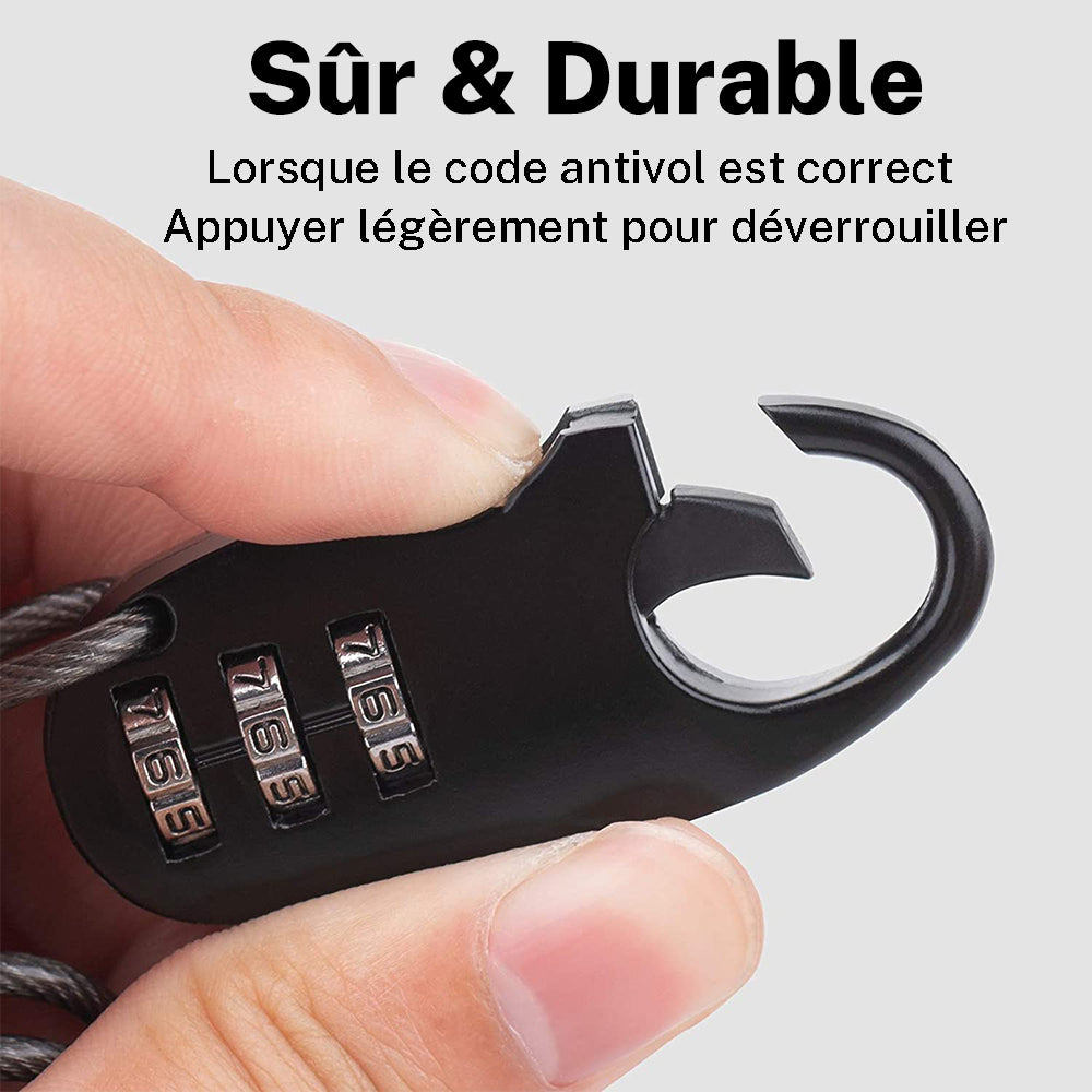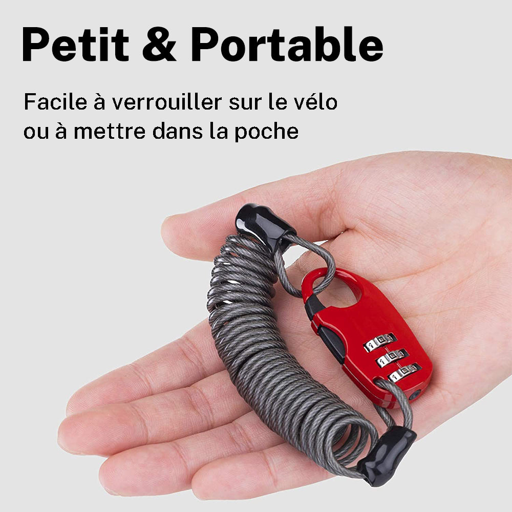 | Libellé | ROCKBROS Câble Antivol Casque Vélo avec Code à 3 Chiffres Antivol Cadenas pliable 90 cm |