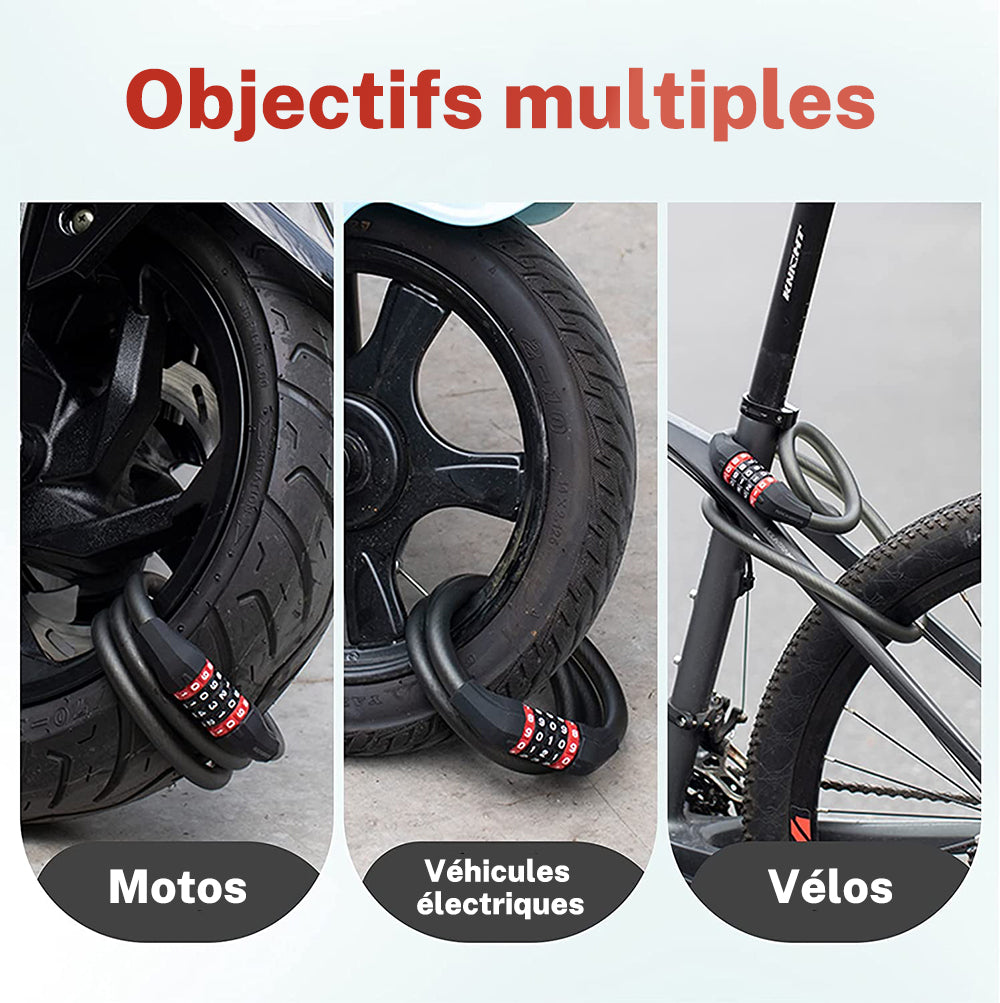 Ce verrou de vélo est très polyvalent, vous pouvez l'utiliser pour verrouiller votre vélo, moto, poussette, cible et bagages.