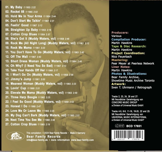 Liste des pistes 1.01 . my baby - Cotton, James1.02 . rocket 88 - Cotton, James1.03 . hold me in your arms - Cotton, James1.04 . don't start me to talkin' - Cotton, James1.05 . feelin' good - Cotton, James1.06 . straighten up baby - Cotton, James1.07 . cotton crop blues - Cotton, James1.08 . she's got it (muddy waters vcl) - Cotton, James1.09 . rock me (all night long) (muddy waters vcl) - Cotton, James1.10 . rock me mama - Cotton, James1.11 . you don't have to go (muddy waters vcl) - Cotton, James1.12 . off the wall - Cotton, James1.13 . short dress woman (muddy waters vcl) - Cotton, James1.14 . oh why? (i need you so bad) - Cotton, James1.15 . take your hands off her - Cotton, James1.16 . i won't go on (muddy waters vcl) - Cotton, James1.17 . jimmy's jump - Cotton, James1.18 . meanest woman (muddy waters vcl) - Cotton, James1.19 . lovin' cup - Cotton, James1.20 . elevate me mama (muddy waters vcl) - Cotton, James1.21 . three harp boogie - Cotton, James1.22 . i feel so good (muddy waters vcl) - Cotton, James1.23 . honest i do - Cotton, James1.24 . love me or leave me - Cotton, James1.25 . my dog can't bark (muddy waters vcl) - Cotton, James1.26 . next time you see me - Cotton, James1.27 . cotton crop blues - Cotton, James