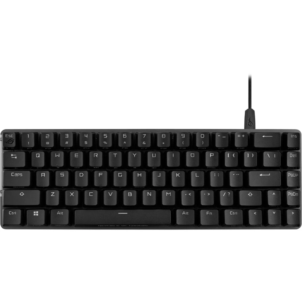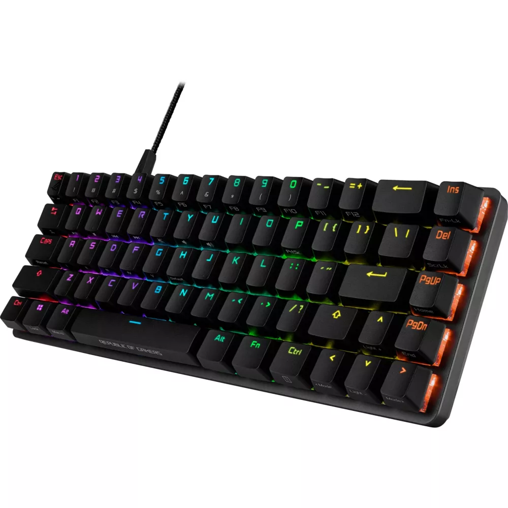 Clavier de jeu ROG Falchion Ace 65 % compact avec commutateurs mécaniques ROG NX prélubrifiés avec stabilisateur de commutateur ROG, capuchons de touches PBT doubleshot, mousse insonorisante, écran tactile interactif, deux ports Type-C, trois angles d'inclinaison du clavier et étui de protection - Conception compacte : clavier à 65 % dans un cadre à 60 % intégrant magistralement les touches fléchées et de navigation - Commutateurs mécaniques ROG NX : tige et boîtier lubrifiés pour des clics plus fluides et pour éliminer les bruits de rebond respectivement, actionnement rapide et courbes de force réglées par ROG pour des frappes excellentes et cohérentes. - Meilleure expérience de frappe : stabilisateur de commutateur ROG spécialement conçu pour garantir des frappes fluides et une stabilité pour les touches plus longues, ainsi que des capuchons de touches ROG PBT doubleshot et une mousse insonorisante intégrée pour une meilleure acoustique. - Contrôle intuitif : écran tactile interactif pour des réglages et une personnalisation faciles - Double USB-C® : placement de port flexible pour une configuration plus soignée et permet aux utilisateurs de basculer rapidement entre deux PC - Design ergonomique : trois angles d'inclinaison du clavier pour plus de confort et de contrôle - Protection portable : étui de protection innovant pour clavier offrant une protection lors de vos déplacements.