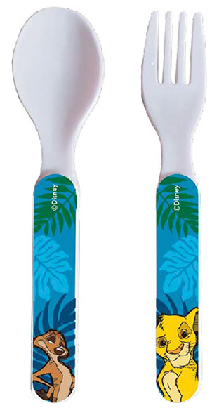 Set couverts Roi Lion composés d'une fourchette et d'une cuillère. En polypropylène
