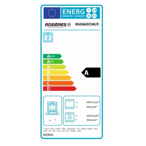 | Libellé | Rosieres RGG663CSW/E four et cuisinière Gaz Blanc |