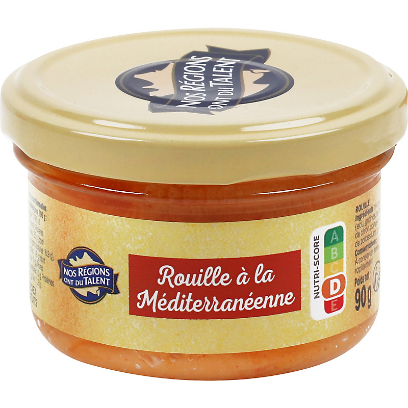 Ce produit à part sa couleur n’a rien à voir avec une rouille. Ce n’est qu’une vague mayonnaise liquide marronasse. Absolument aucun goût. Pas de trace d’ail dans la recette prétendument « méditerranéenne ». Que fait ce produit dans la gamme « les regions ont du talent » ????
