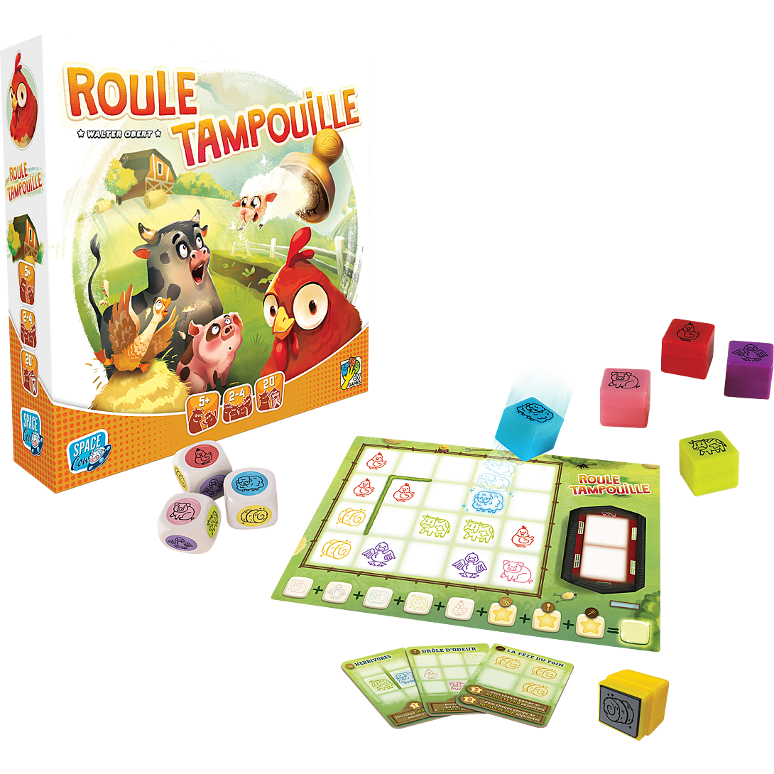 Lancez les dés puis utilisez les tampons animaux désignés par les résultats sur votre ferme. Rassemblez les plus grands groupes d’animaux possible !