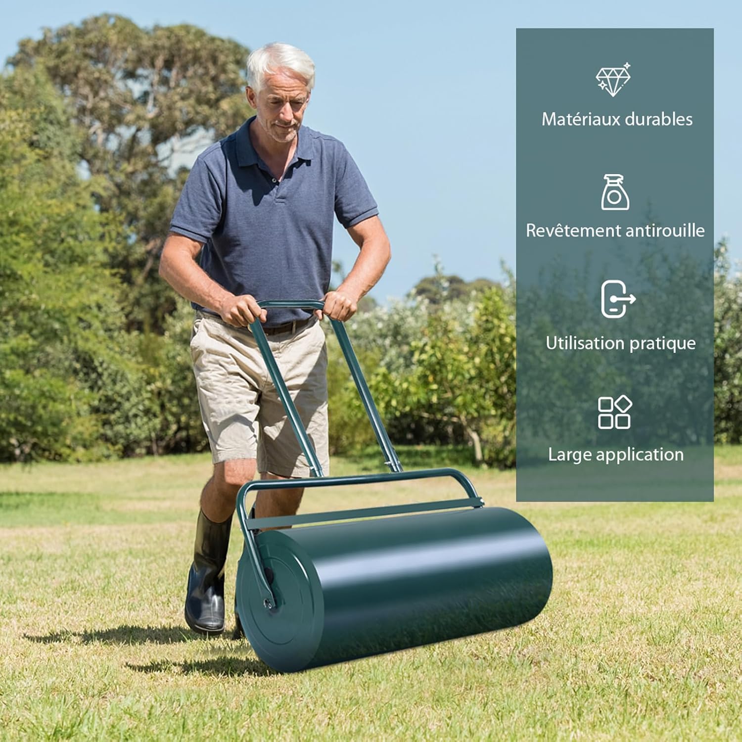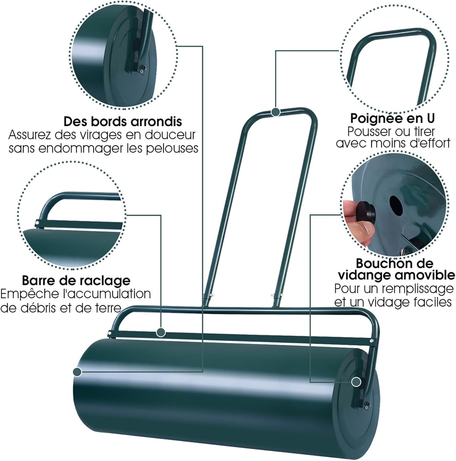 | Libellé | Rouleau à gazon de jardin 48 L, rempli d'eau & sable, poignée en acier, haute résistance, diam. 32 cm (Vert) |