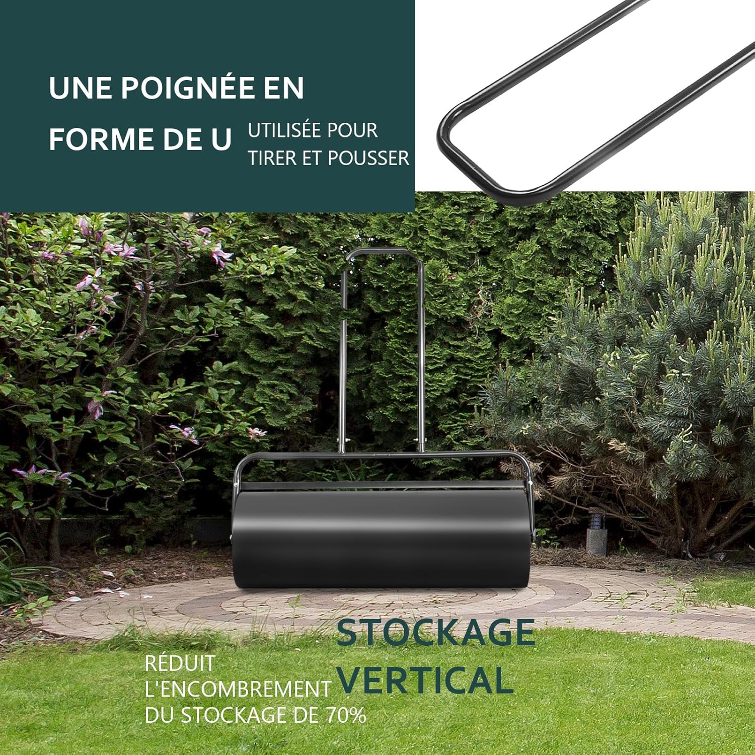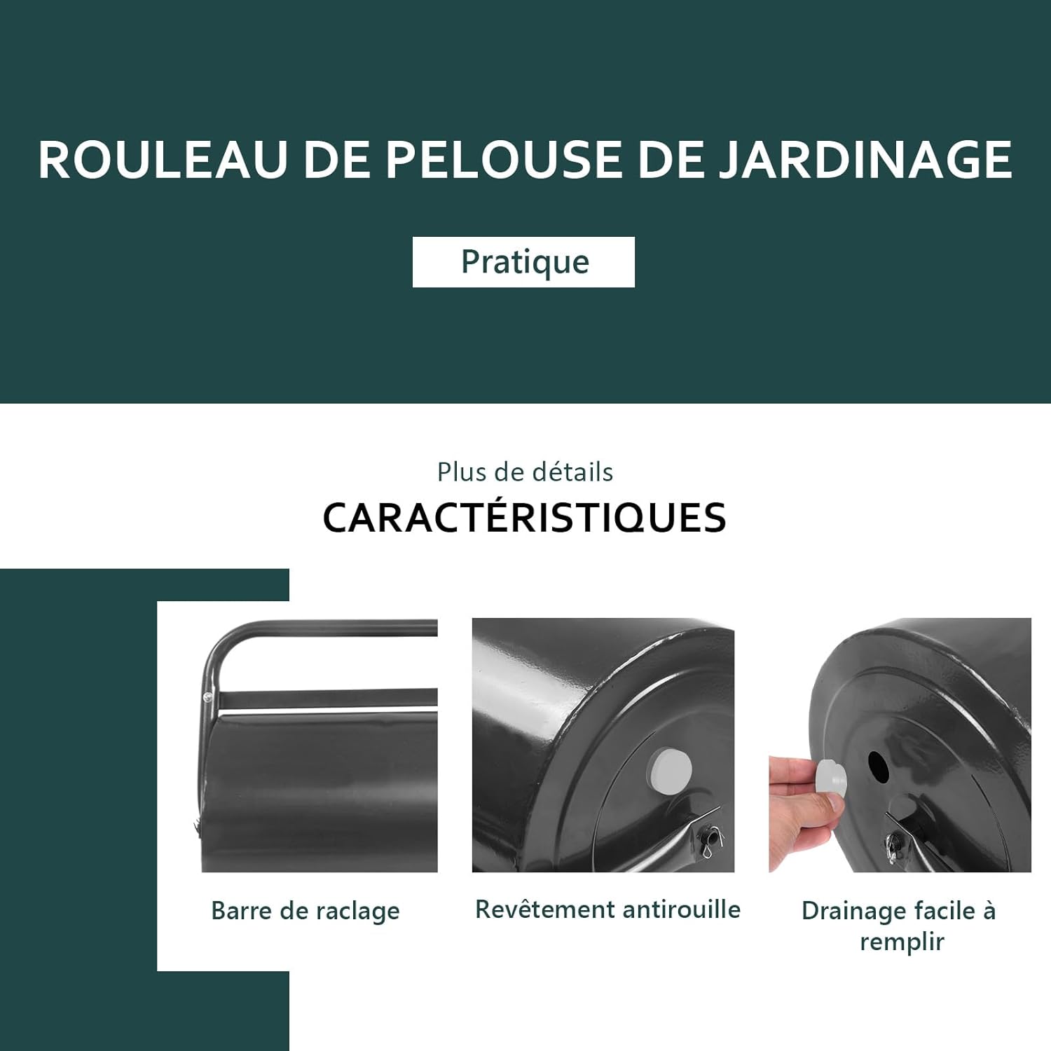 | Libellé | Rouleau à gazon de jardin 63 L, rempli d'eau & sable, poignée en acier, haute résistance, diam. 30 cm (Noir) |