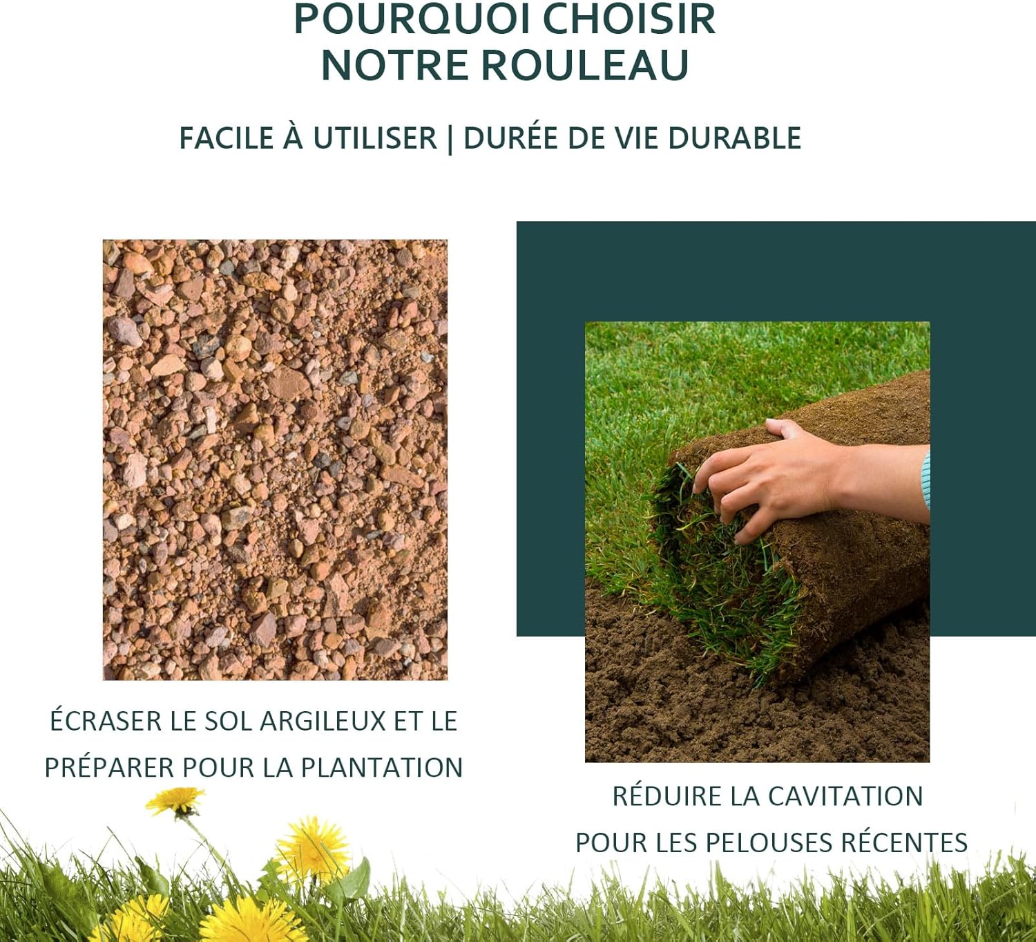 [ Idéal pour les grandes pelouses ] La machine peut non seulement peut effacer les dégâts causés par les taupes, mais peut aussi tasser la terre meuble, les graines nouvellement cousues ou le gazon, ce qui améliore la qualité de votre pelouse. Il est parfait pour obtenir une pelouse uniforme et lisse.