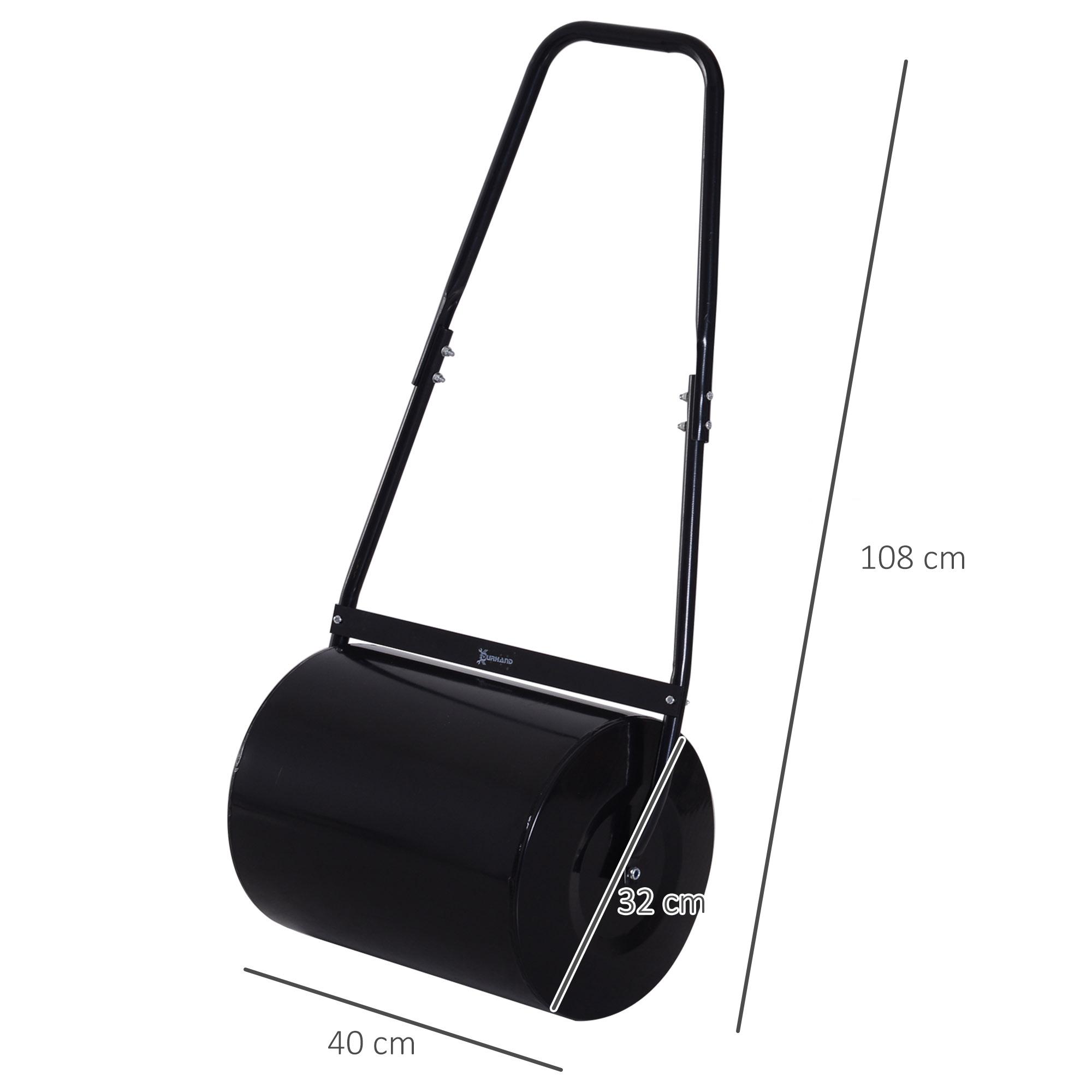 Libellé Rouleau à gazon jardin en acier avec poignée dim. 50L x 32l x 108H cm lestage max. 30 L noir