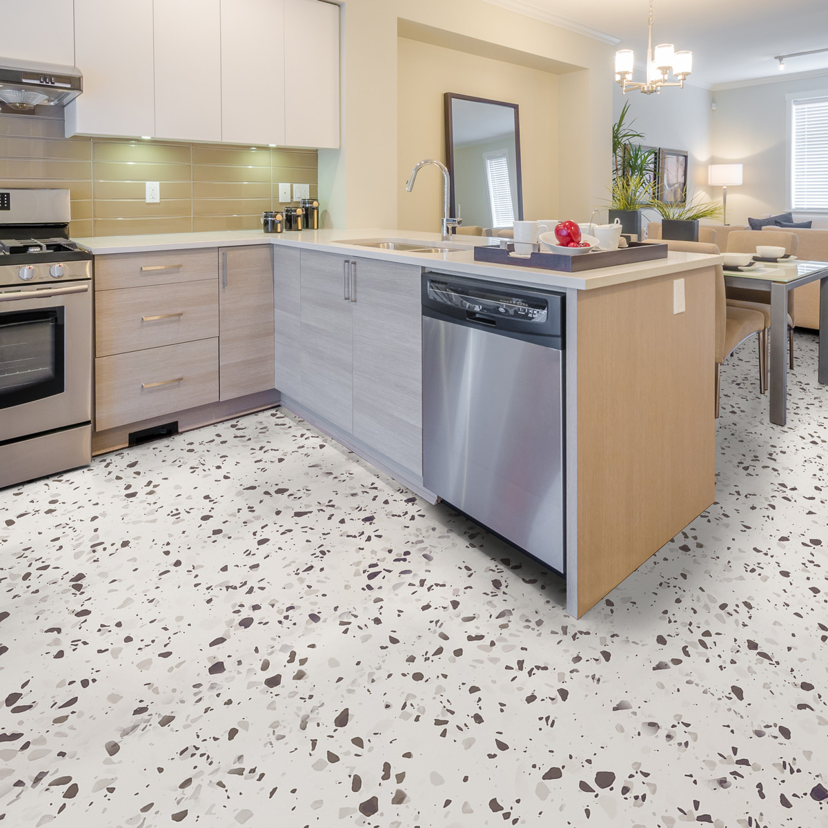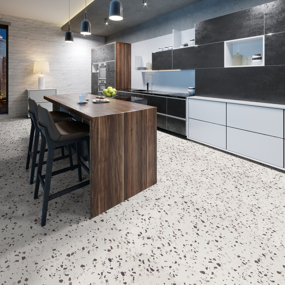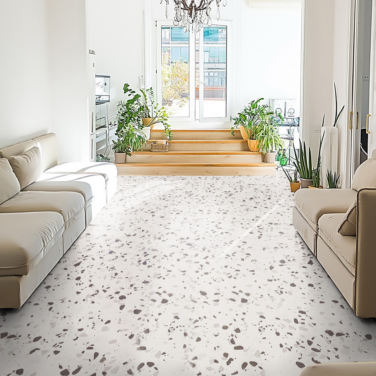 Rouleau adhésif sol terrazzo anti-dérapant étanche au mètre - Sticker Sol avec laminat de Protection en P