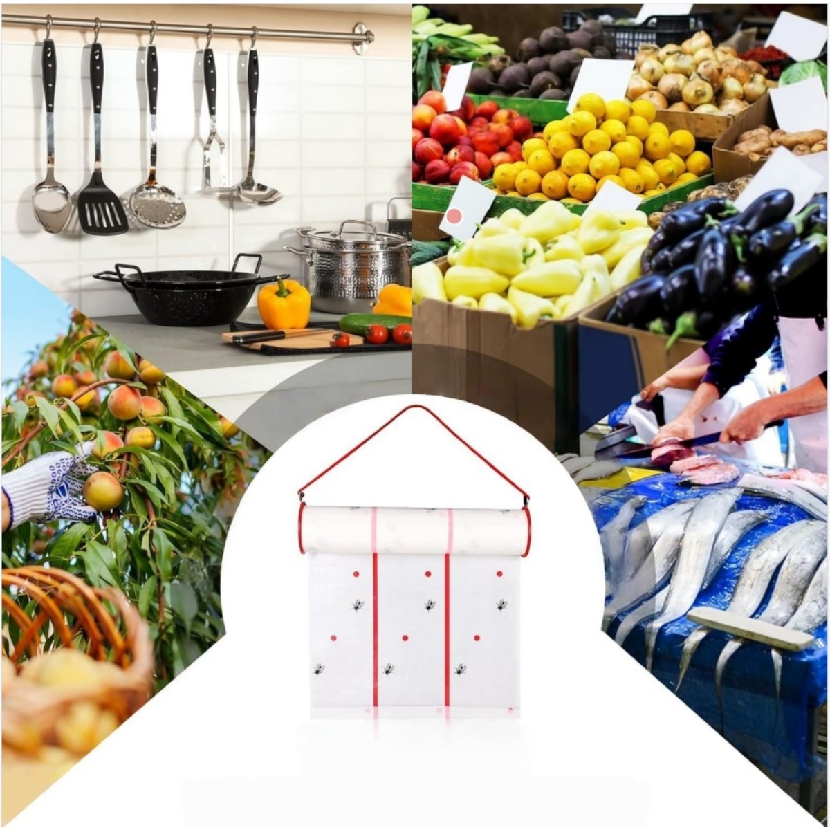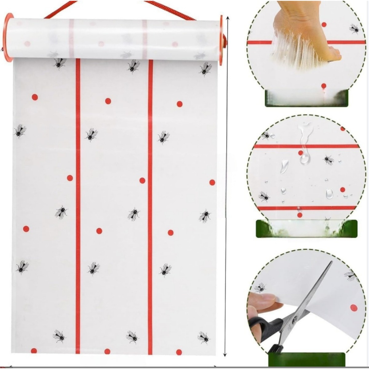 Paramètres: Longueur maximale jusqu'à 4m; Tirer pour utiliser et couper lorsque la section est terminée; Capture physique; Sans ingrédients pesticides; Papier suspendu anti-mouches pour usage intérieur