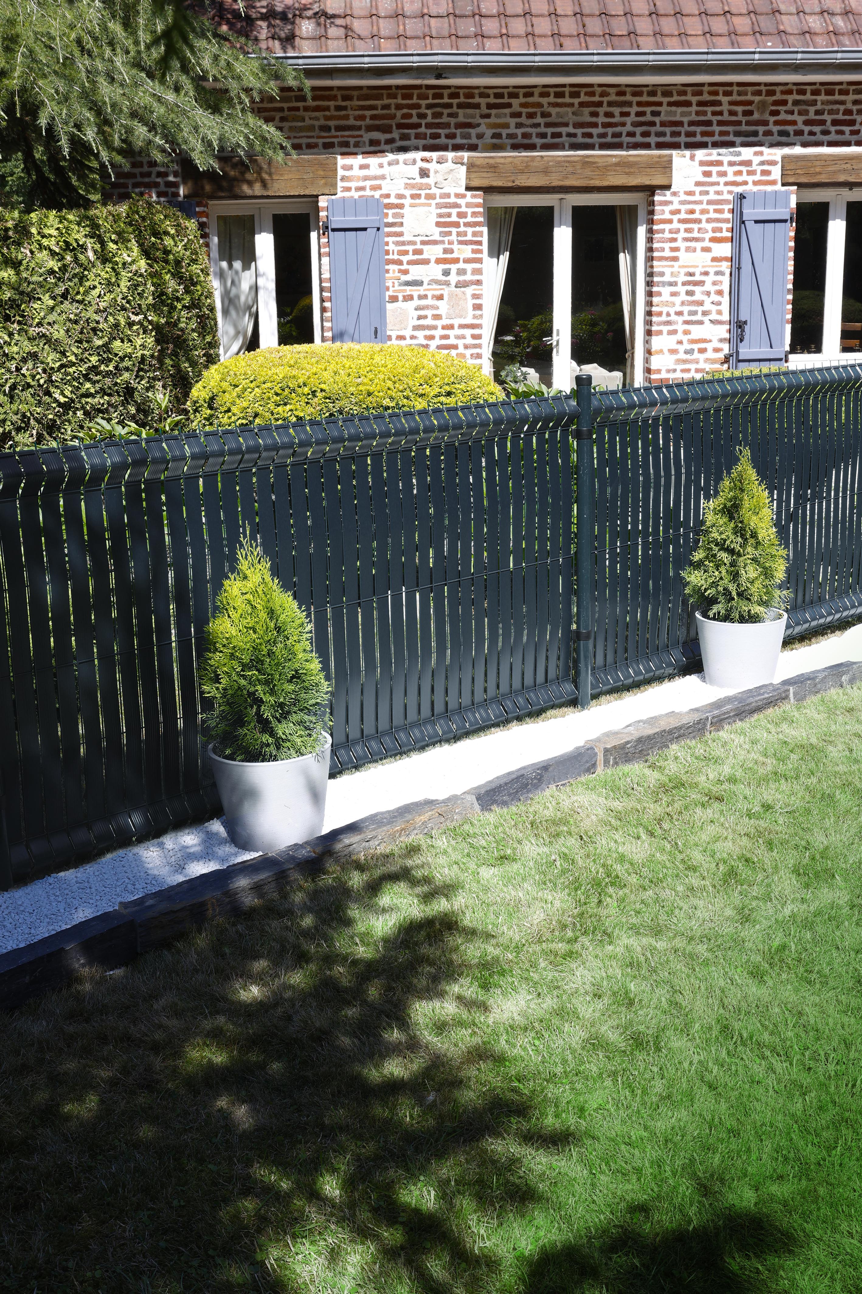 Rouleau occultant pvc gris acier 50m + 100clips. Lames de 46mm à "clipser" facilement, à moduler et à découper soit même à dimension, selon son envie et l'occultation des coins intimistes des jardins.