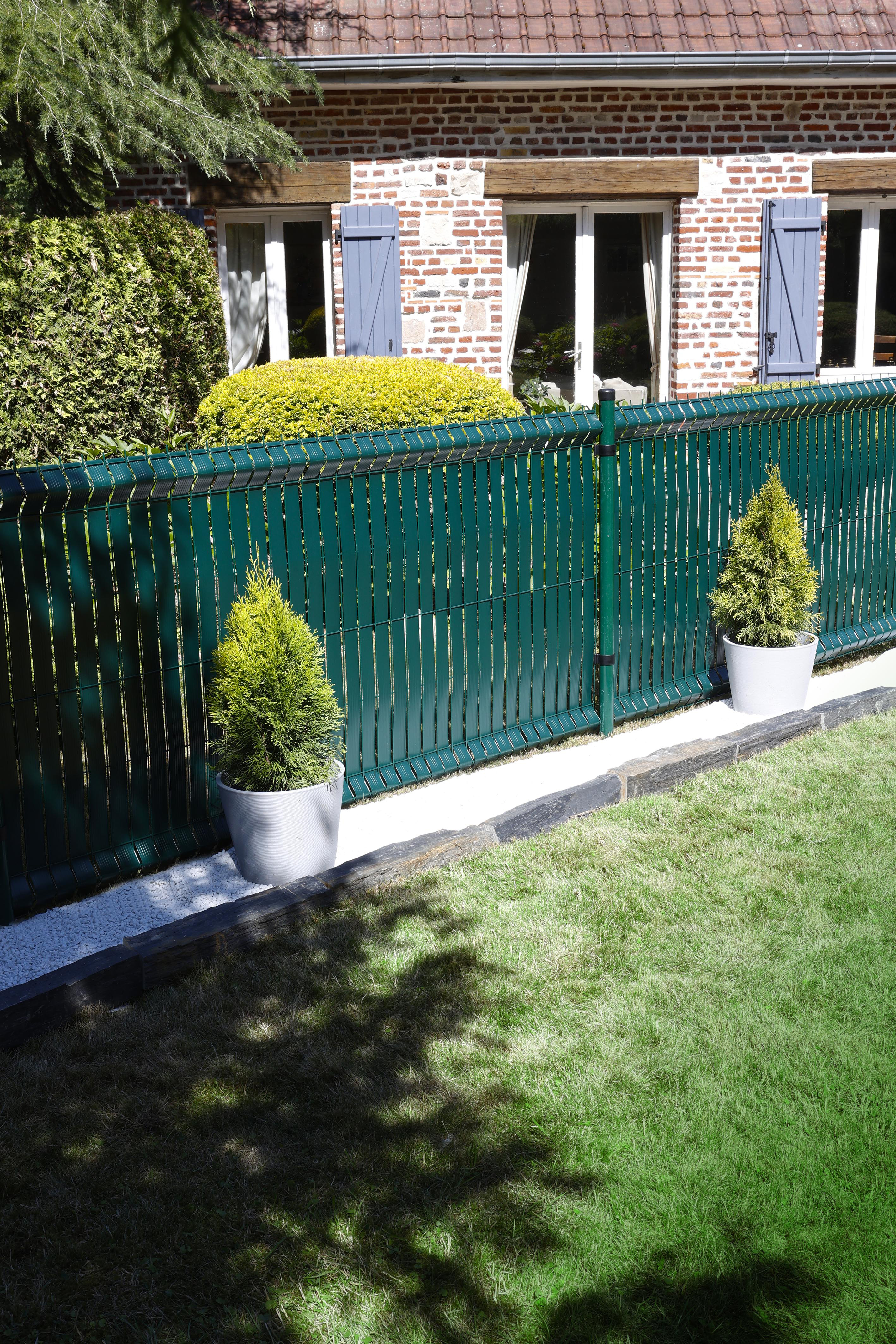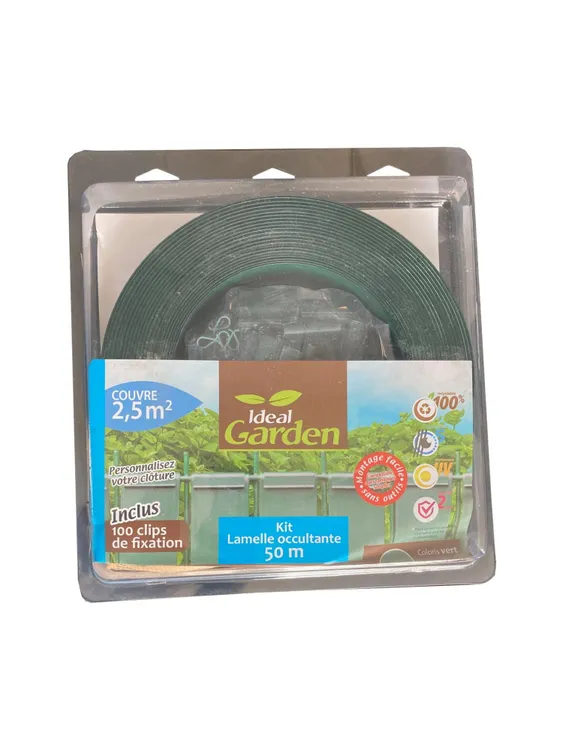 ce kit de lamelle occultante en pvc est idéal pour habiller votre grillage et vous cacher des regards indiscrets. il contient un rouleau d’une longueur de 50 mètres et d’une largeur de 48 mm, +100 clips de fixation. installation très simple, les clips vous permettent de fixer vos lamelles solidement à votre grillage en toute simplicité. degrés d'occultation 2/5. Existe en plusieurs coloris (gris, vert, imitation bois).