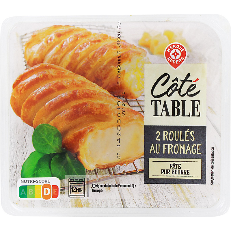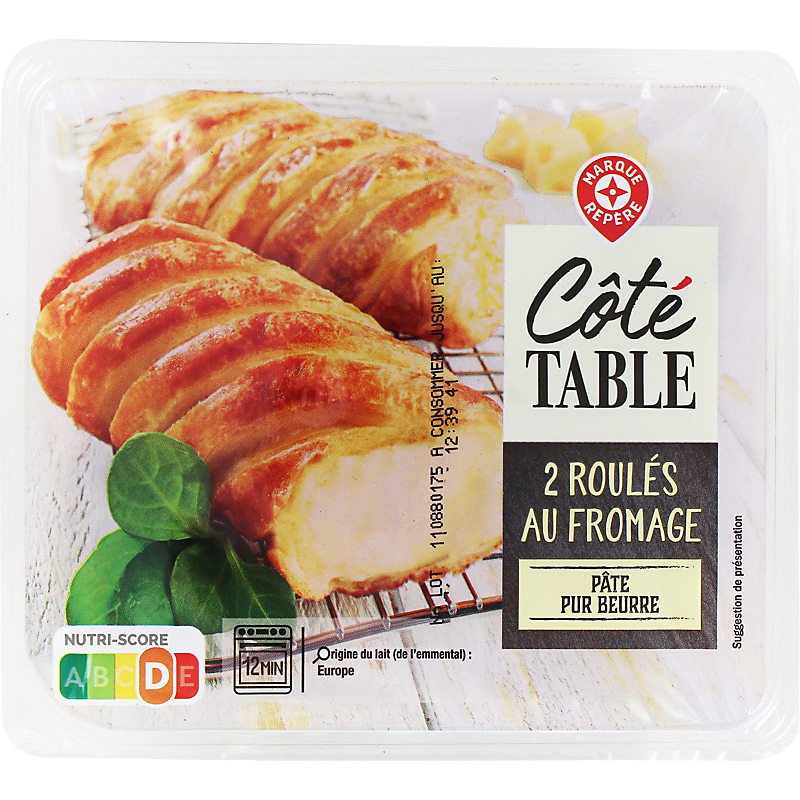 Ingrédients : Béchamel à l'emmental 46,2 % (eau, farine de blé, emmental 4,1%, beurre 4,1%, lactose, protéines de lait, crème, sel, muscade, extraits d’épices) ; farine de blé ; eau ; beurre 9,7 % ; emmental 4,6 % ; sucre ; levure ; sel ; gluten de blé ; antioxydant : acide ascorbique.