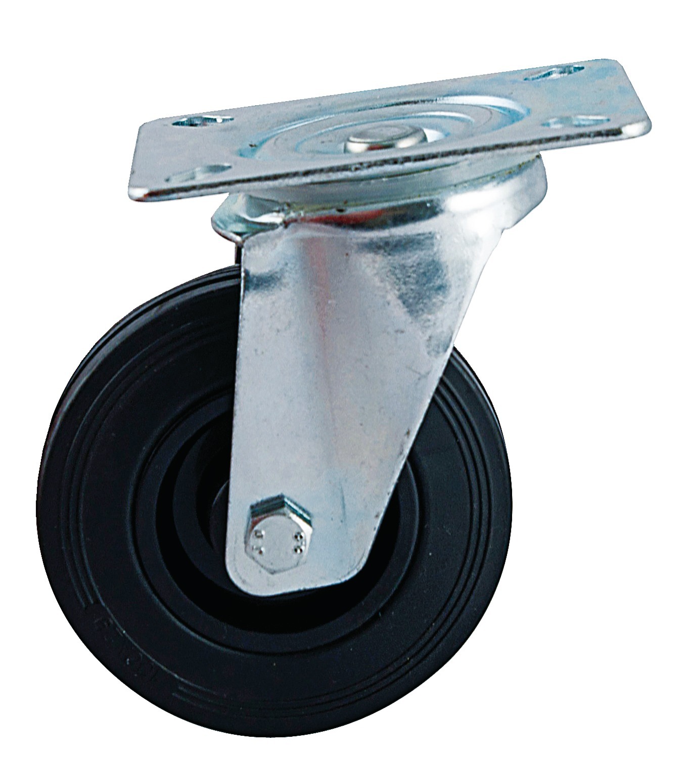Roulette D125mm caoutchouc noir platine pivotante - AVL - 508833O