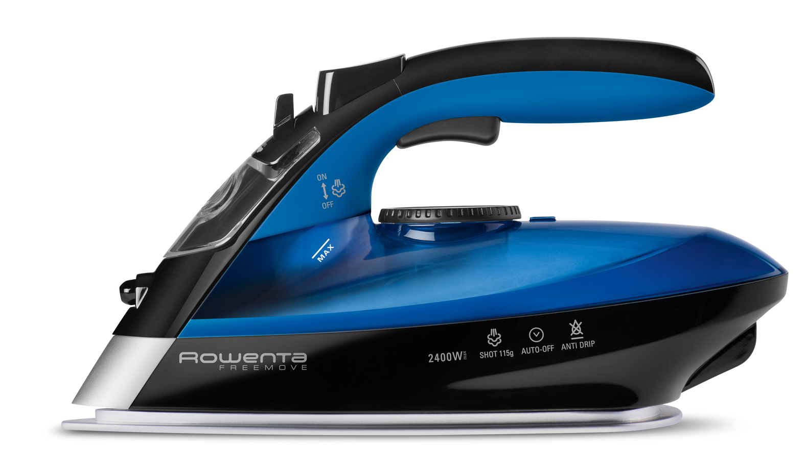Rowenta Freemove. Type: Fer à vapeur, Matériau/revêtement de la semelle: Semelle Laser Microsteam 400, Performances de jet de vapeur: 115 g/min. Puissance: 2400 W. Largeur: 120 mm, Profondeur: 270 mm, Hauteur: 145 mm