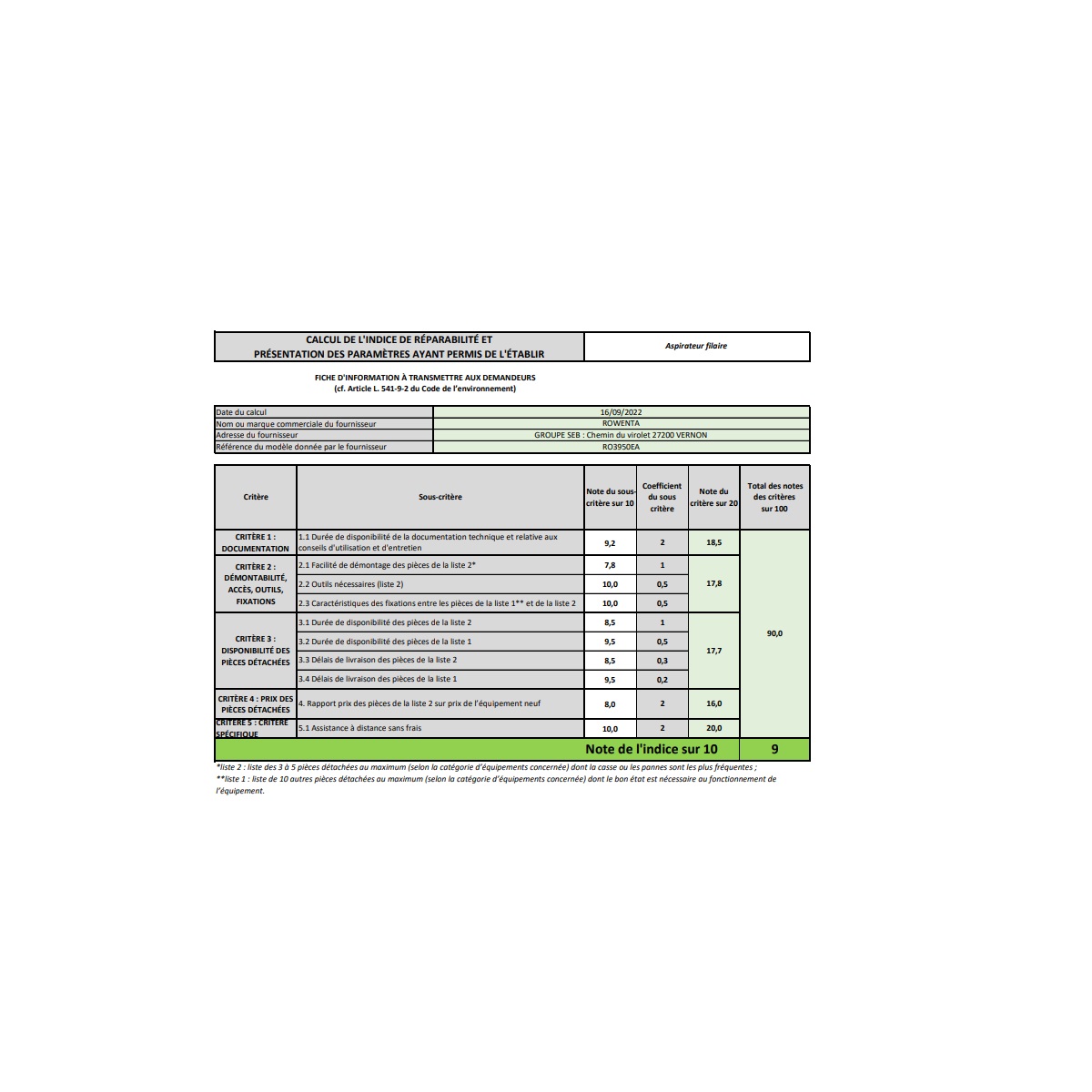 | Garantie légale de conformité | Pour les produits neufs : 2 ans - Pour les produits d'occasion : dispense de fournir la preuve du défaut de conformité dans les 12 mois de la délivrance du bien. |