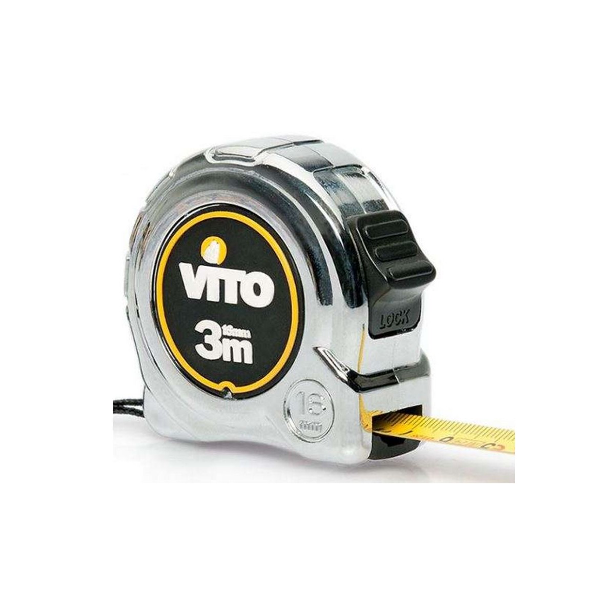Passer le carrousel d'imagesMètre Ruban VITO en acier chromé rétractable de 3 Mètres avec languette d'accrochage et bouton de blocage. Idéal pour vos travaux de précision, vos mesures professionnelles et très utile pour la maison. Boitier métal haute résistance. Dimensions 3 mètres de long et 16 mm de largeur.