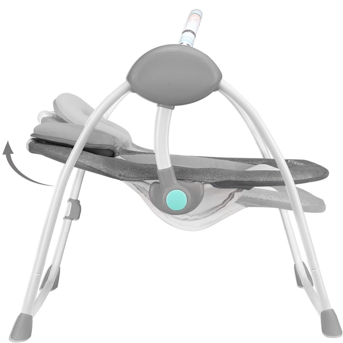 La balancelle dispose de 10 mélodies et effets sonores apaisants, d'une moustiquaire, d'une arche ludique avec 2 jouets pour stimuler l'enfant.