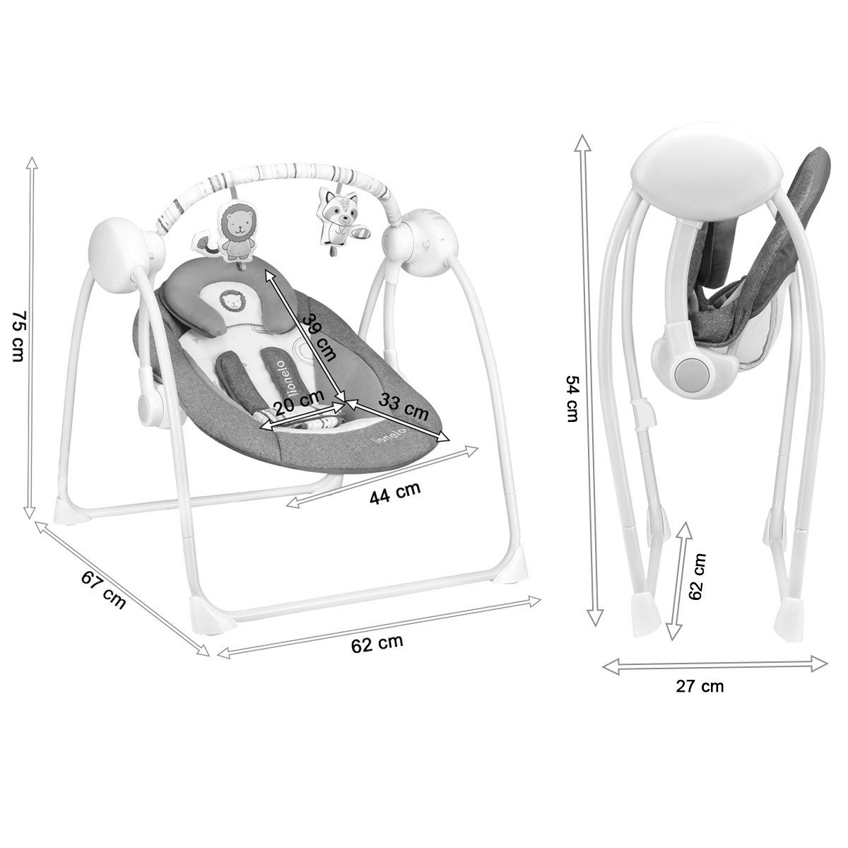 Le dossier de la balancelle est doux et il dispose d'un appui-tête. Structure pliable stable et durable en métal (pliage rapide). Cette balancelle est équipée de 5 vitesses de balancement au choix. Sinon, la balancelle ajustera automatiquement la vitesse en fonction du poids de l'enfant.