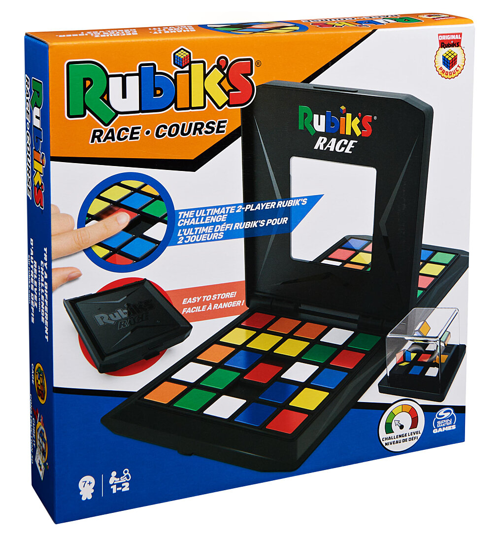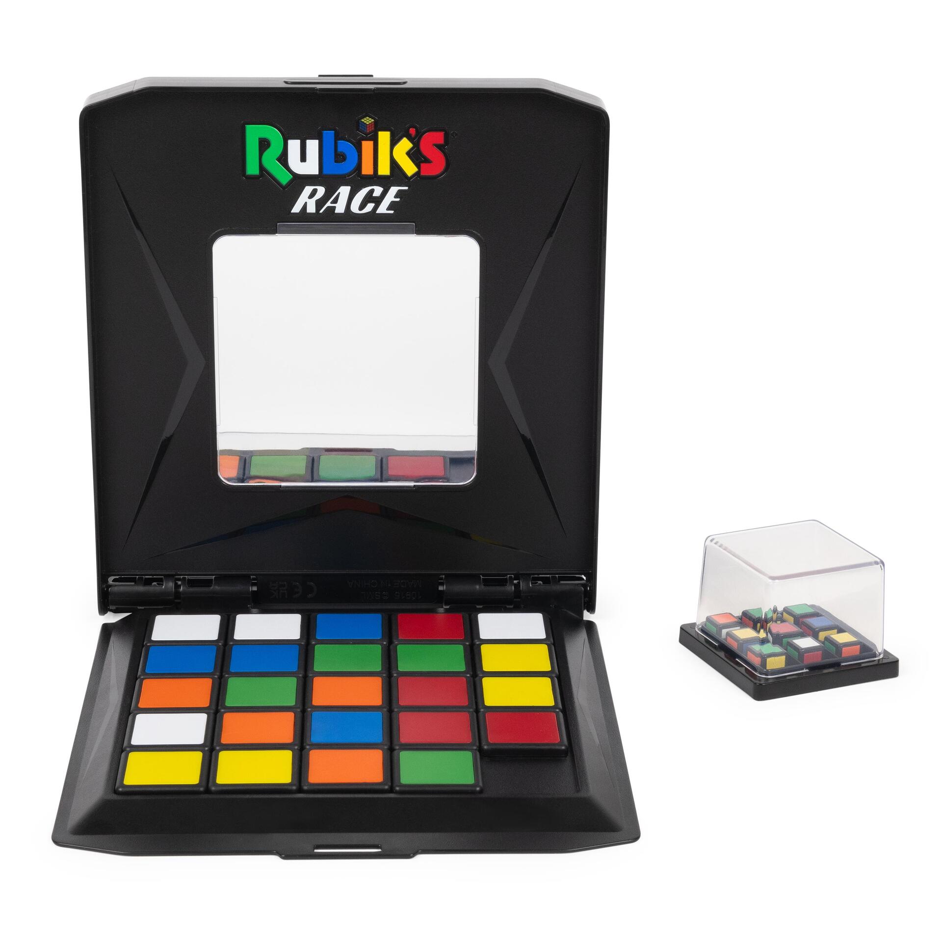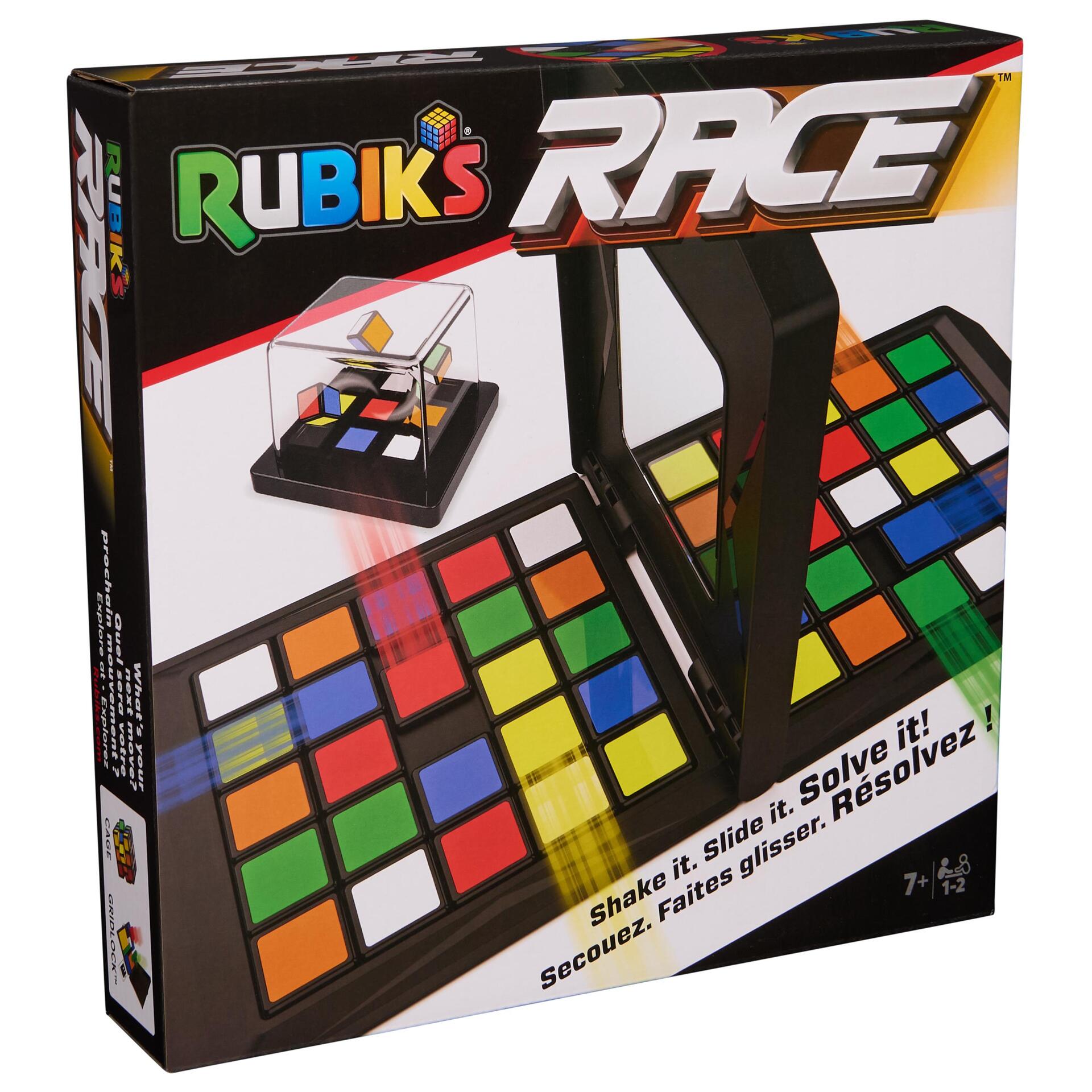 Le principe du jeu Rubik's Race est simple : fais glisser les carrés de couleur afin de recréer, au centre du plateau, le bon motif composé de 3X3 cases et rabats le clapet avant ton adversaire ! Dans ce jeu de réflexion, inspiré du taquin, ton cerveau doit répondre au doigt et à l’œil. Fais glisser les carrés de couleur pour recréer le bon motif composé de 3X3 carrés. Sois le plus rapide ! Contenu du produit : 1 plateau Rubik’s Race, 48 dalles colorées, 1 shaker transparent et les règles du jeu. 2 joueurs. Boîte fermée. A partir de 7 ans.