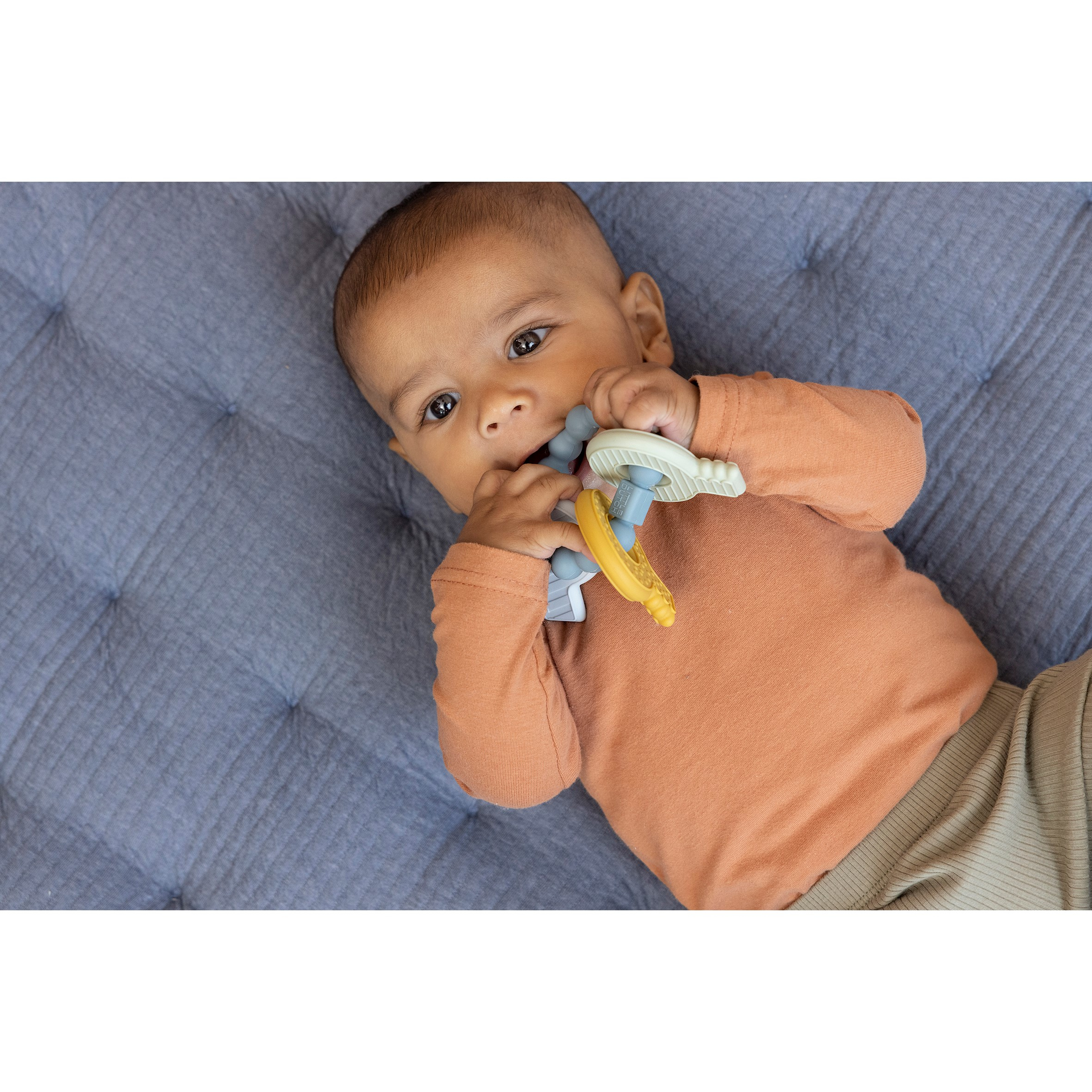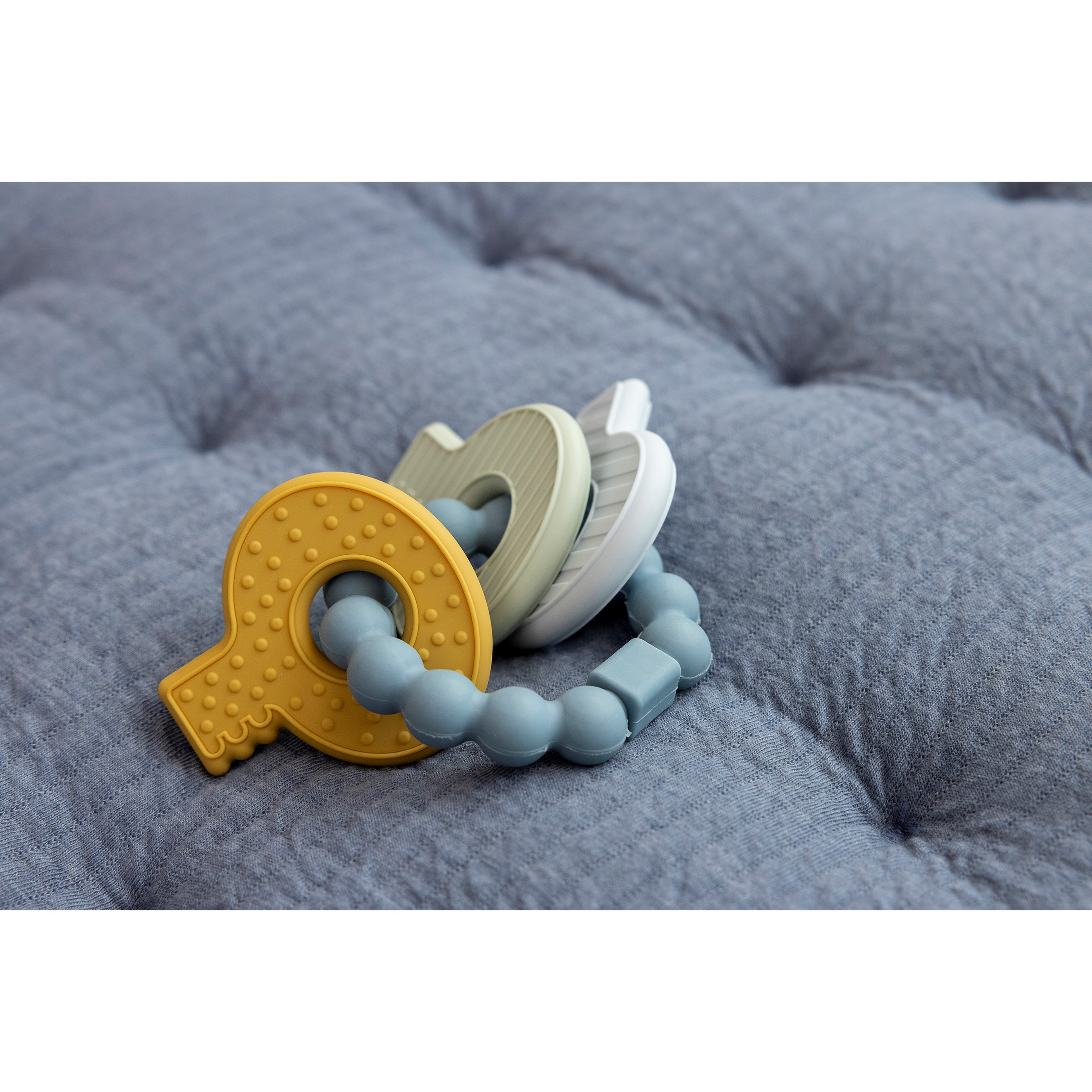 L'arrivée des premières dents est une étape importante pour votre bébé, mais pas toujours agréable ! Pour soulager la douleur, Little Dutch a conçu un jouet de dentition multifonctionnel en forme de trousseau de clés. Le jouet offre un certain confort et aide les nouvelles dents à sortir. Le jouet a différentes textures, ce qui fait que Bébé aura beaucoup de choses à découvrir. Tout spécialement conçu pour être facile à saisir pour Bébé !