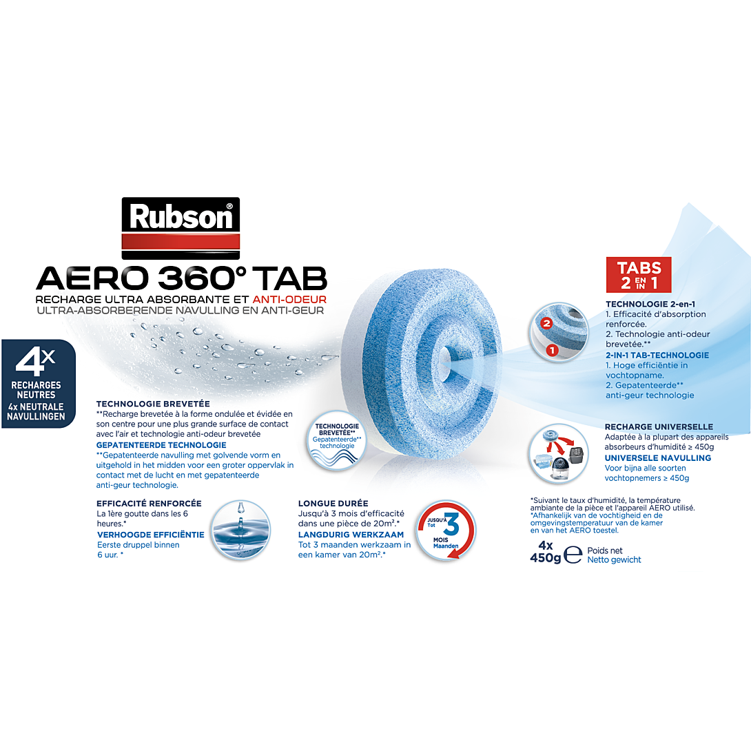 | Libellé | RUBSON Absorbeur AERO 360 Recharge Neutre Lot de 4 |