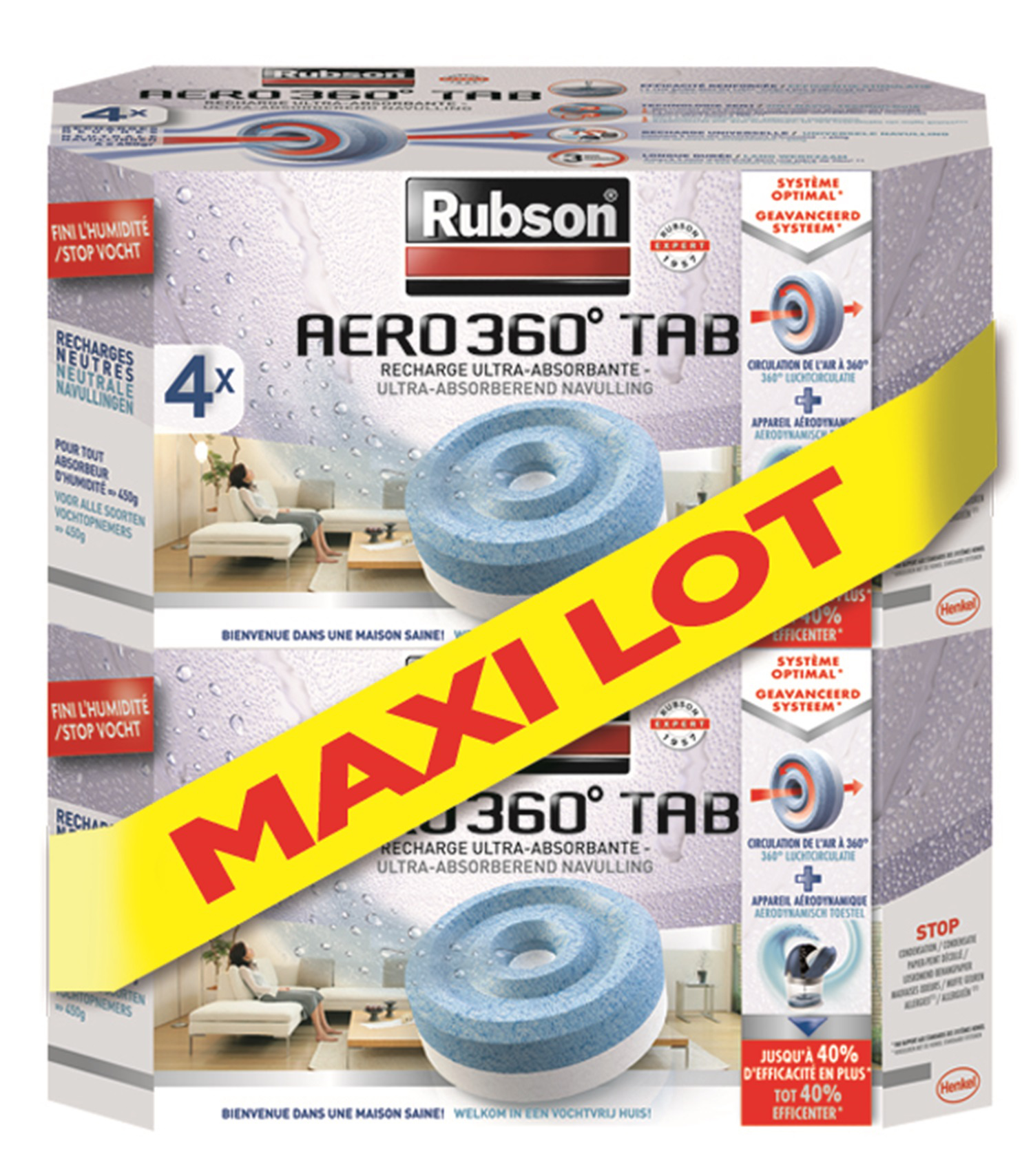 | Libellé | RUBSON MAXI LOT - Recharge AERO 360 Neutre Lot de 4 recharges x2 sleevé |