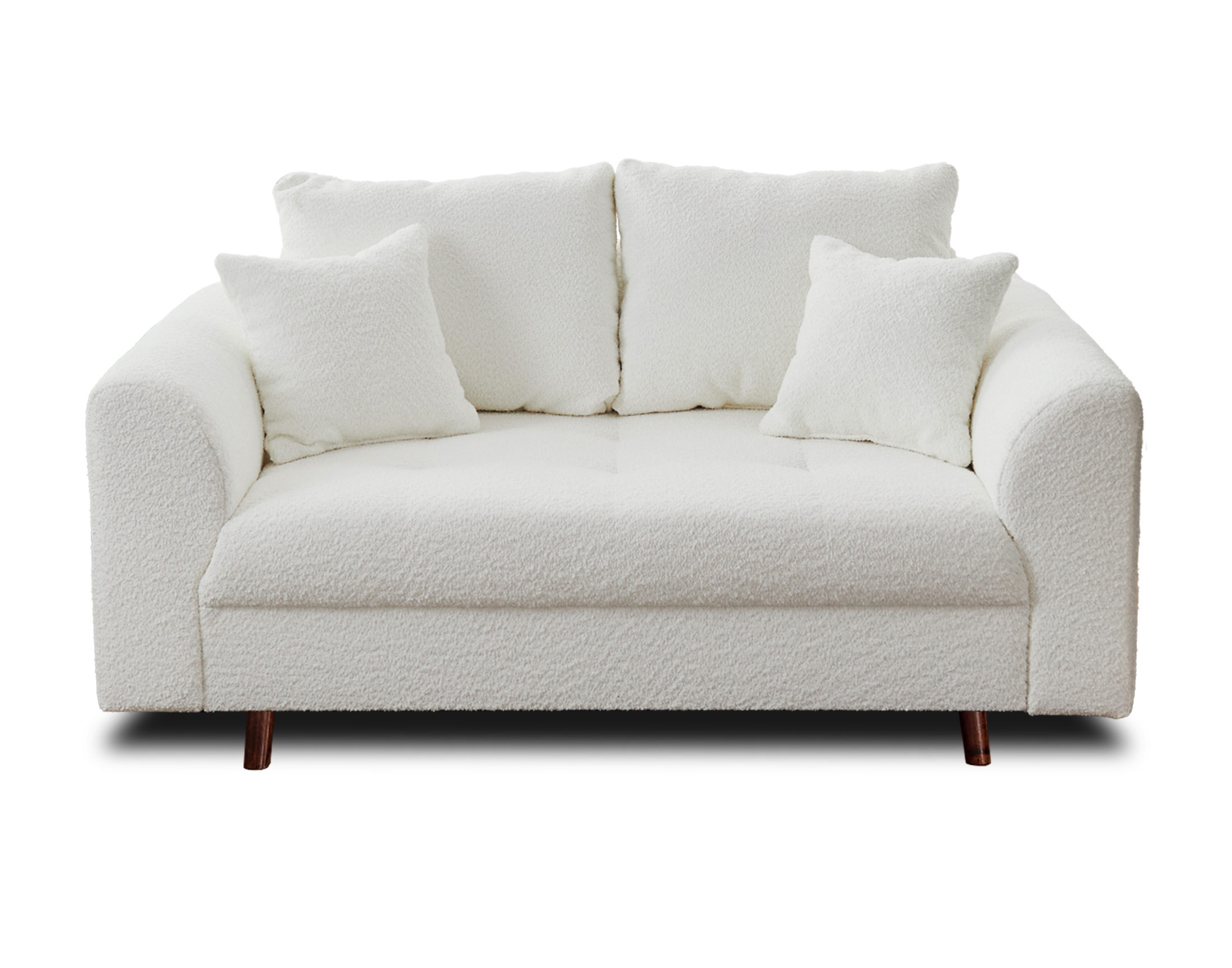 | Plus produit | [Canapé 2 places] Ce canapé compact au revêtement bouclette s’intègre parfaitement dans un salon moderne ou scandinave. [Tissu bouclette] Texture tendance et chaleureuse, idéale pour créer une ambiance cocooning. [Confort optimal] Assise en mousse polyuréthane et dossier moelleux pour des moments de détente incomparables. [Pieds en bois] Finition naturelle et stable, apportant une touche de légèreté au design. [Installation rapide] Notice incluse et éléments pré-assemblés pour une mise en place simplifiée. |