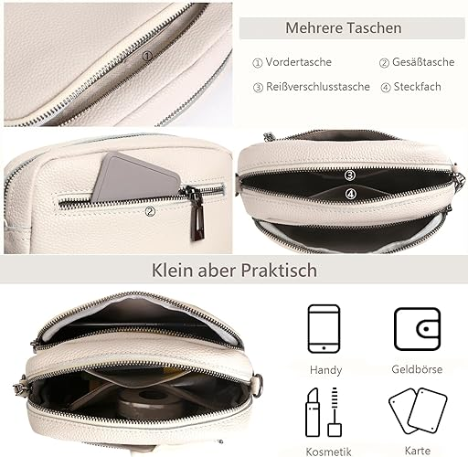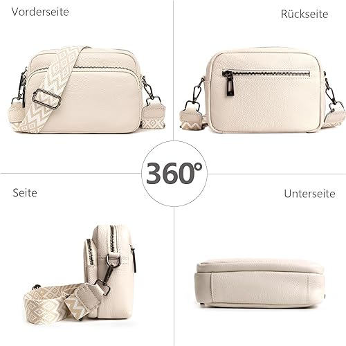 Compartiments avec fermetures éclair : Le sac à bandoulière dispose de plusieurs compartiments différents équipés de fermetures éclair pour un rangement sûr de vos objets de valeur.